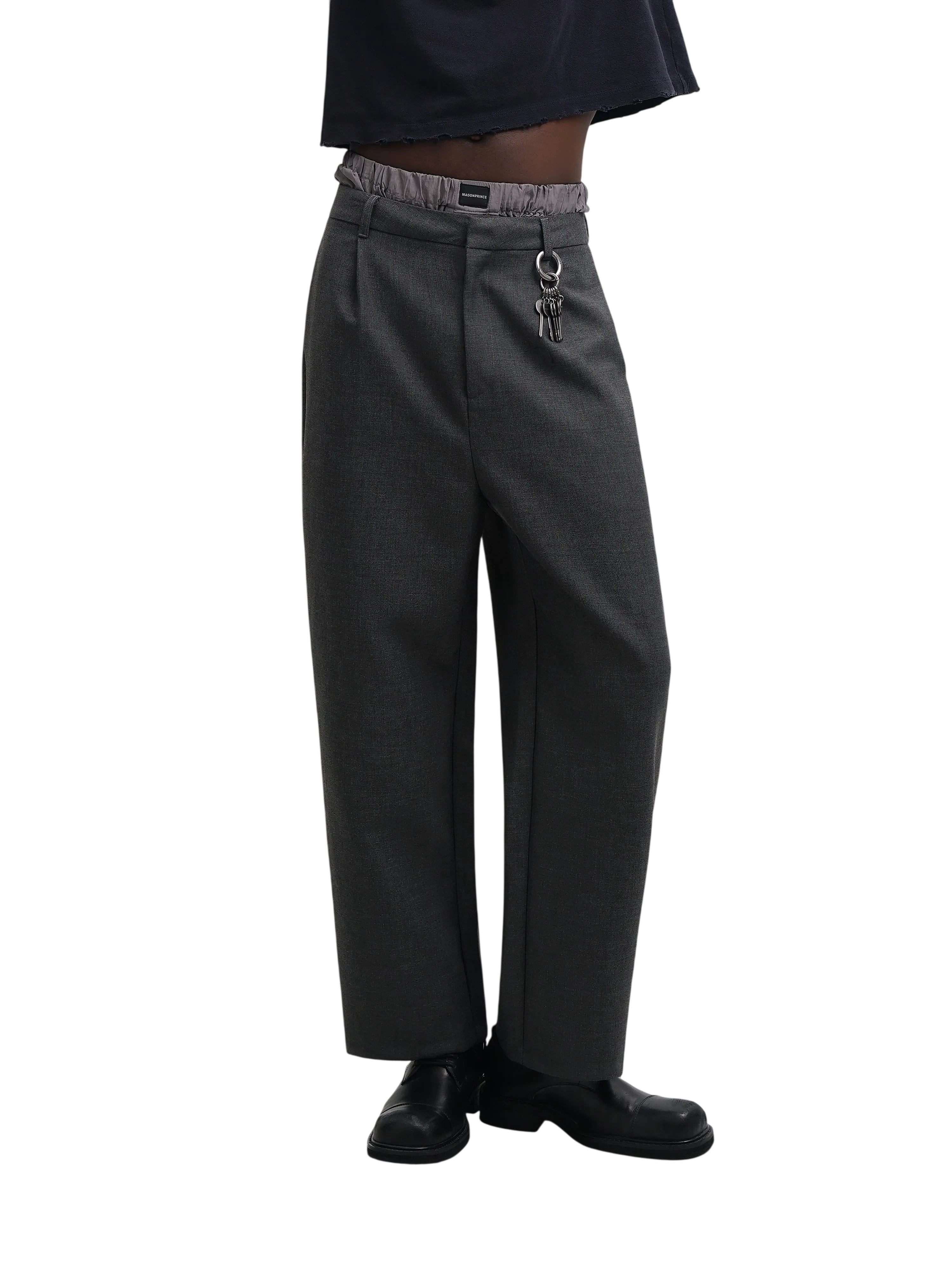 MASONPRINCE Men's Wide-Leg Wool Dress Pants with Keychain Accent