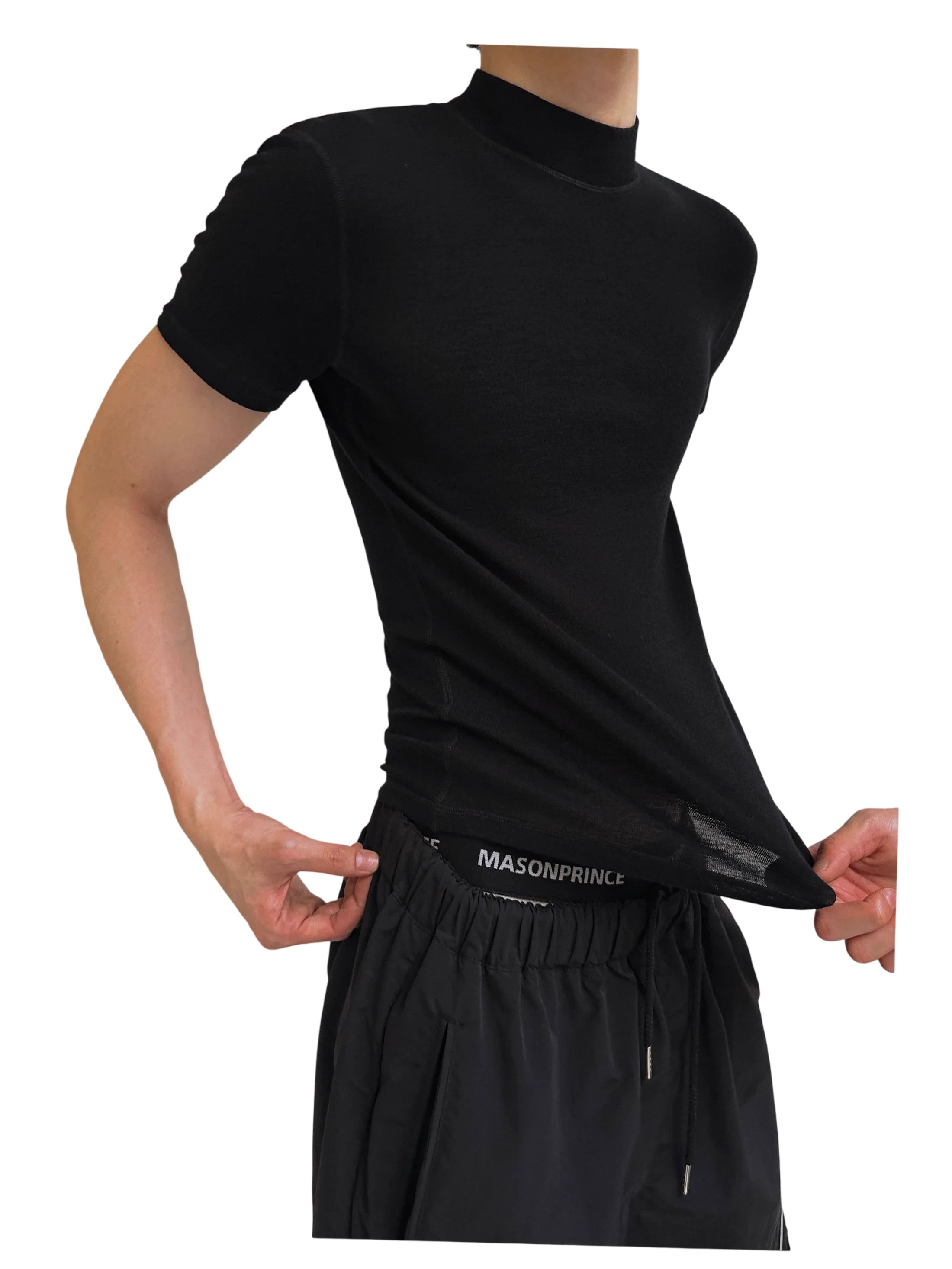MASONPRINCE Men's Wool Stretch Base Layer Mock Neck T-Shirt