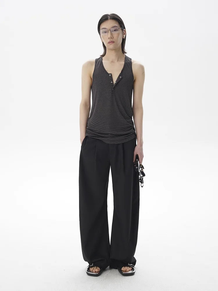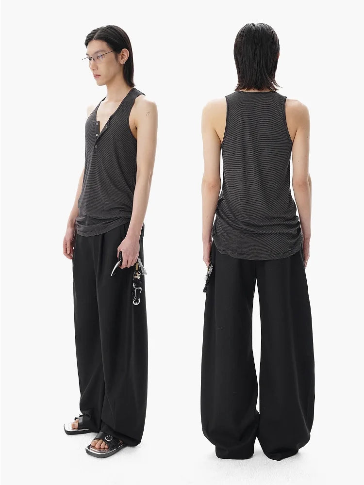 Elevate your casual style with this men's sleeveless Henley tank top, crafted from a soft blend of wool and Tencel for exceptional comfort. Featuring subtle seaside-inspired stripes and button detailing at the neckline, this dark gray tank offers a relaxed fit ideal for warm-weather wear. Pair it effortlessly with wide-leg trousers or casual bottoms for a refined yet laid-back look.