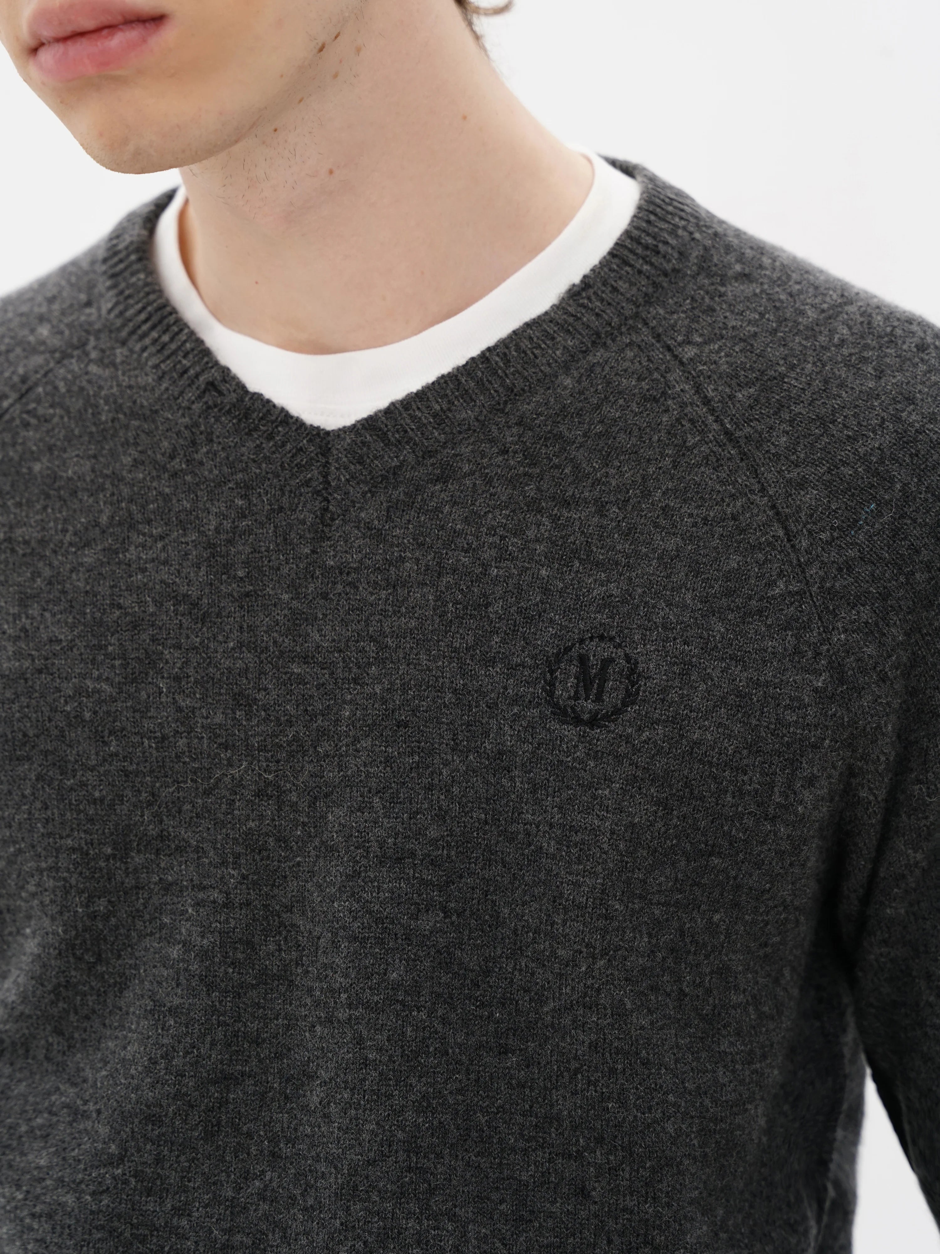 MASONPRINCE Men's Wool V-Neck Distressed Sweater
