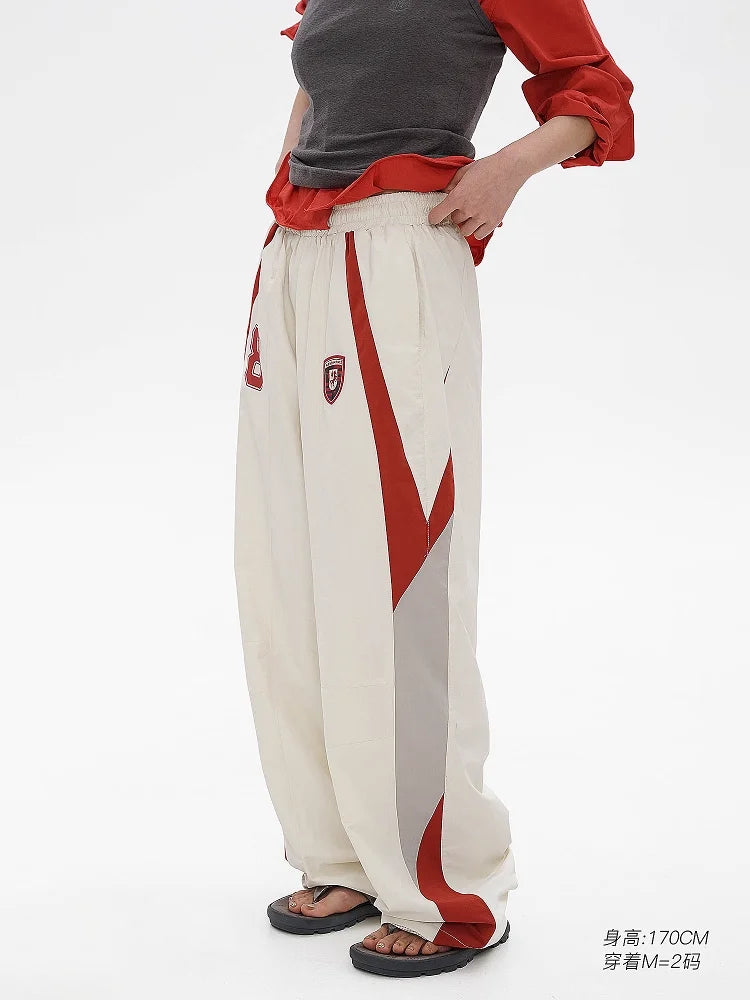 MASONPRINCE No. 8 Badge Elastic Waist Wide-Leg Track Pants