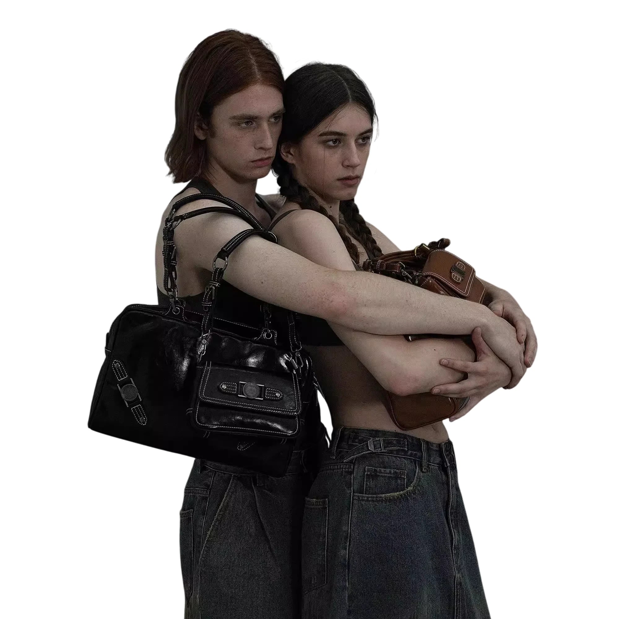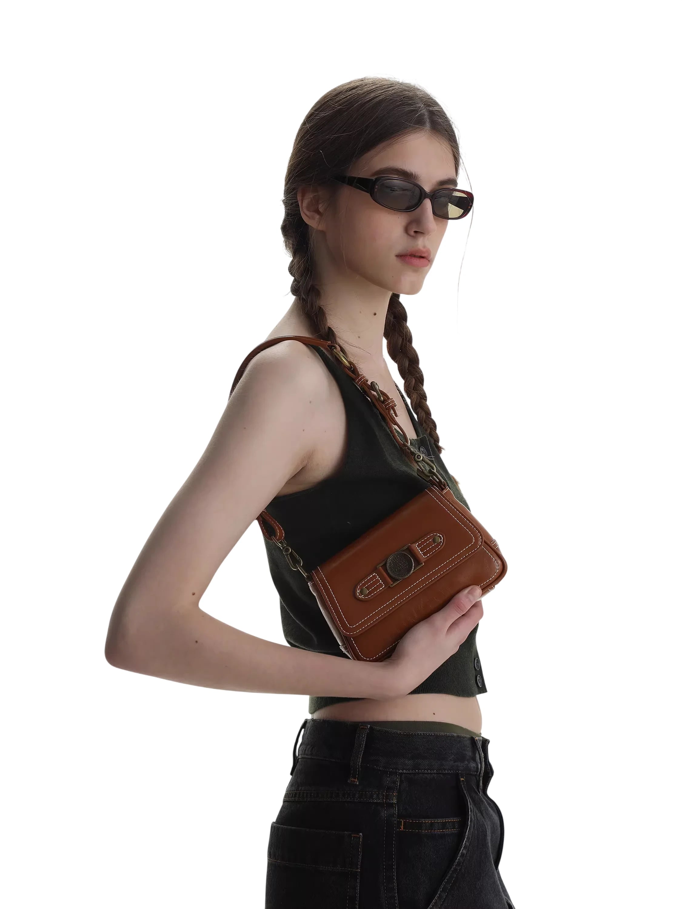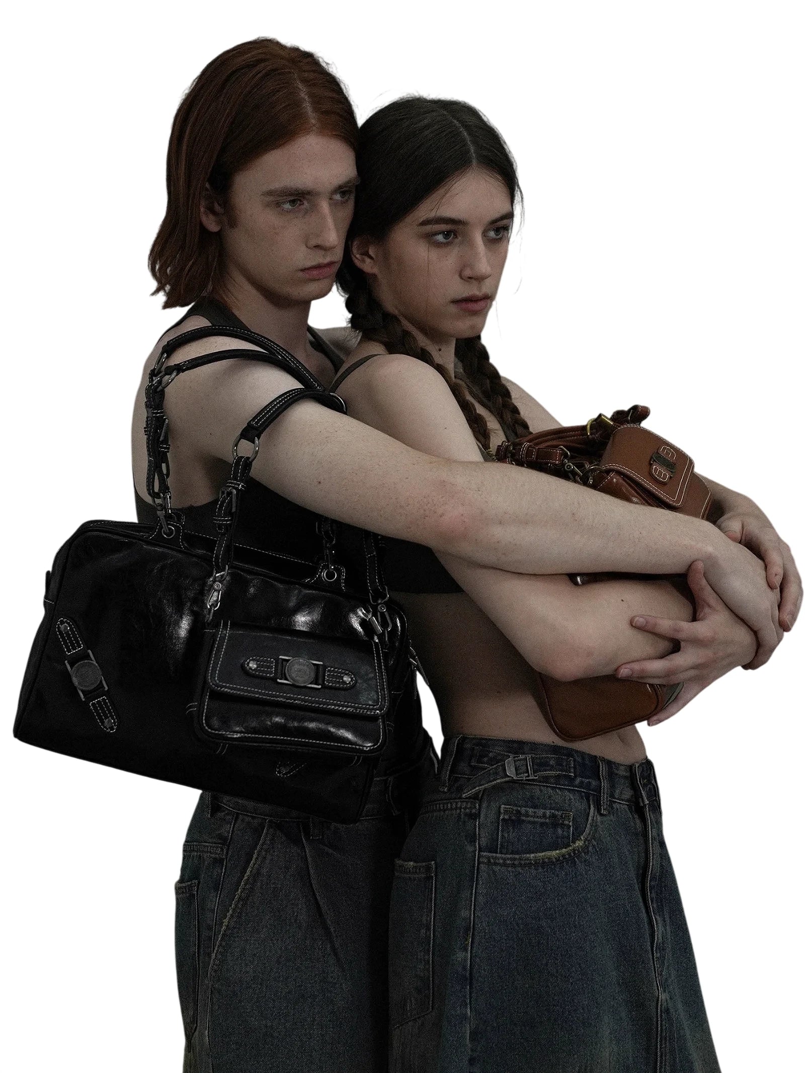This stylish crossbody shoulder bag is crafted from durable oil wax leather, combining vintage charm with modern versatility. Featuring both standard and mini sizes, it comes with metallic hardware for a refined finish.