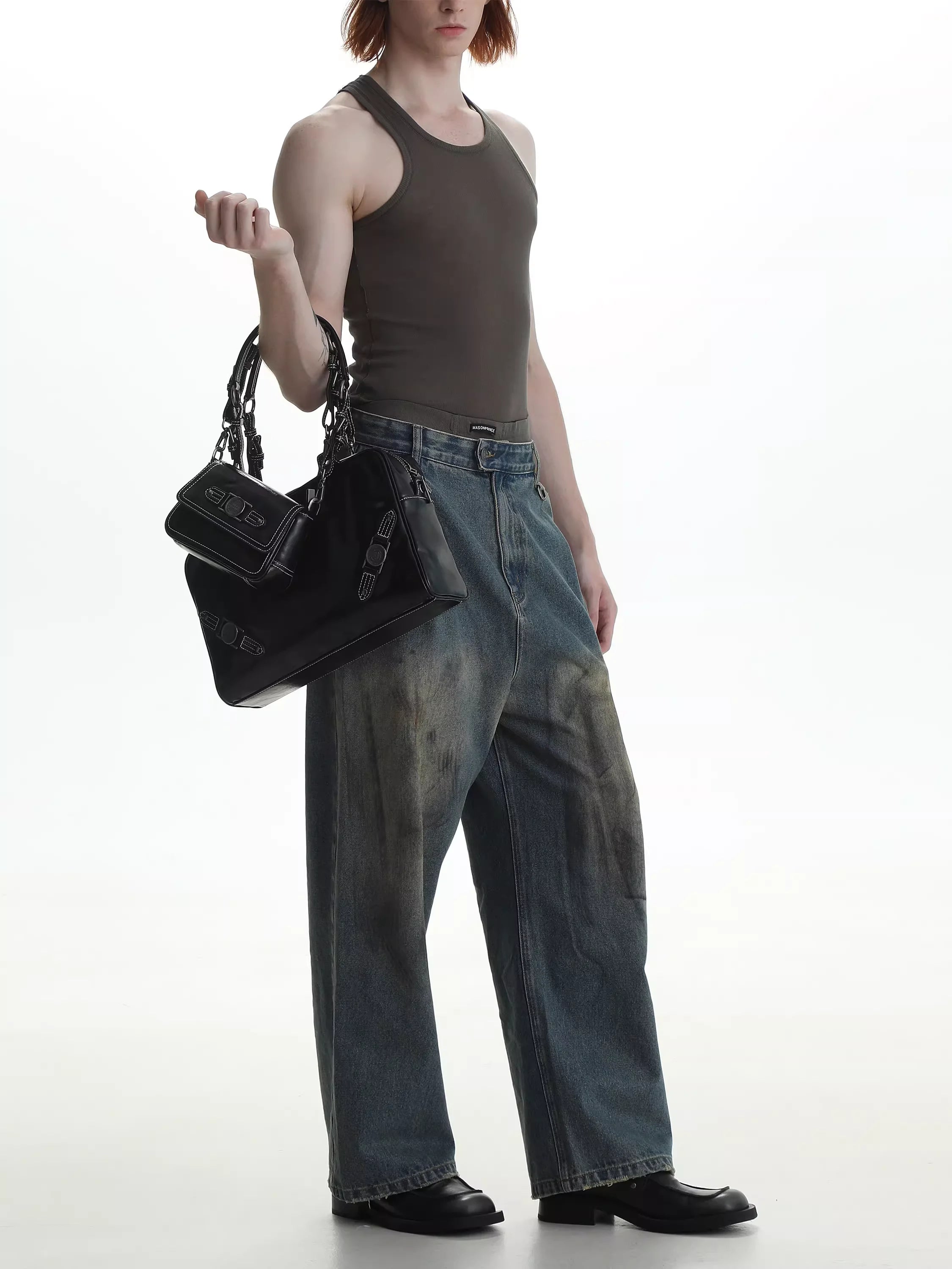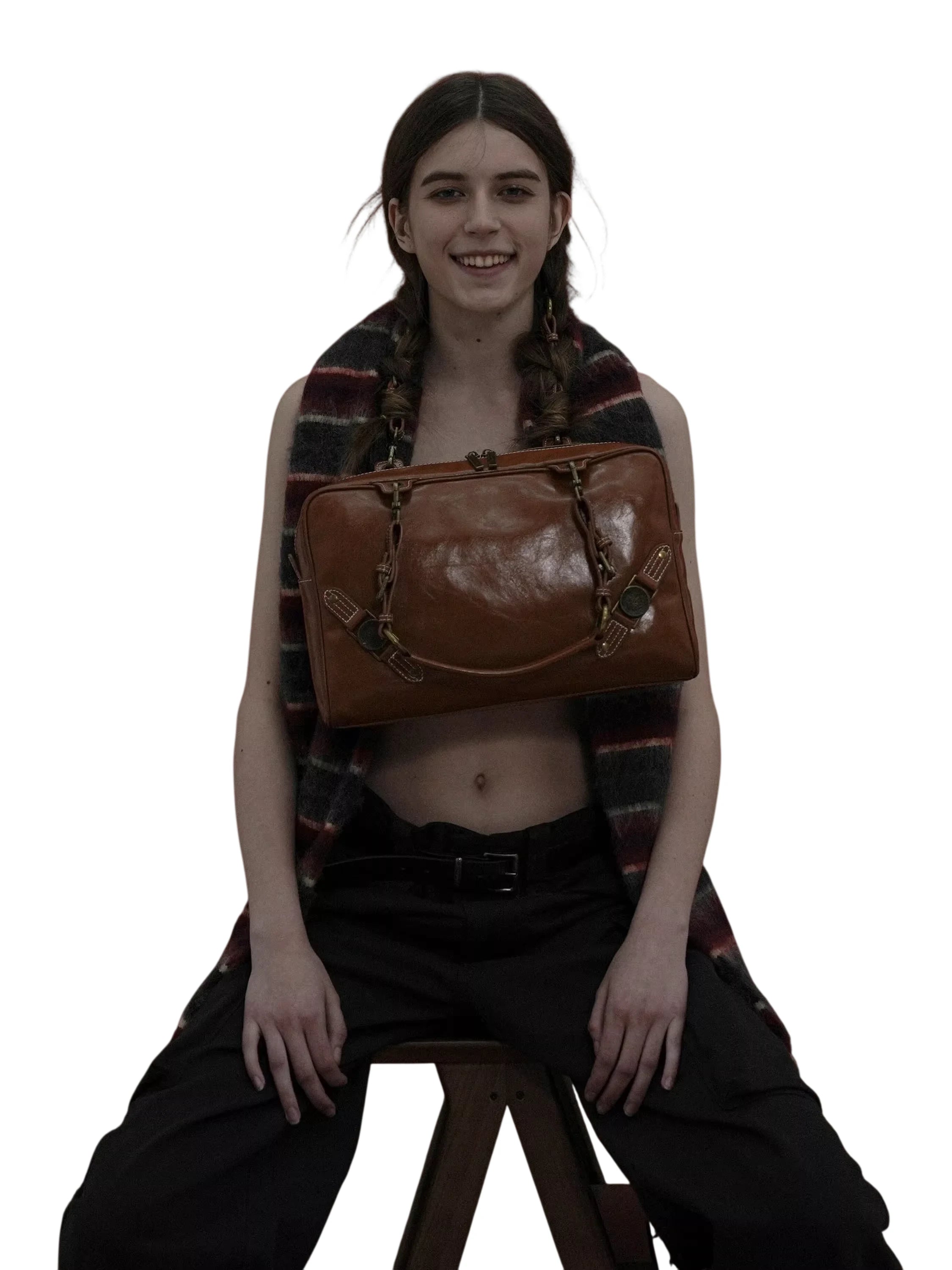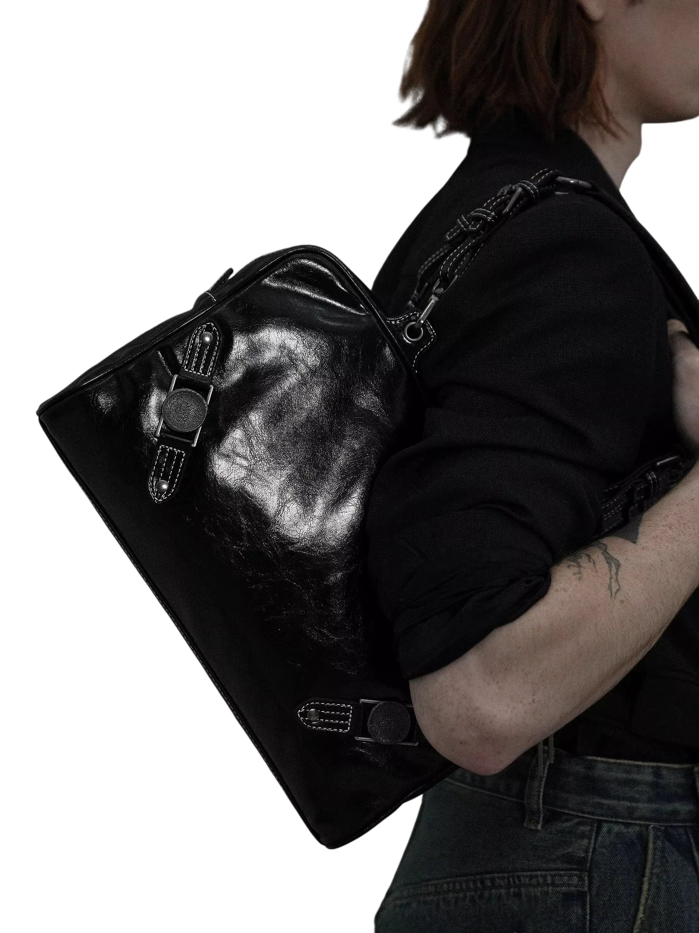 MASONPRINCE Oil Wax Leather Crossbody Shoulder Bag with Metal Accents