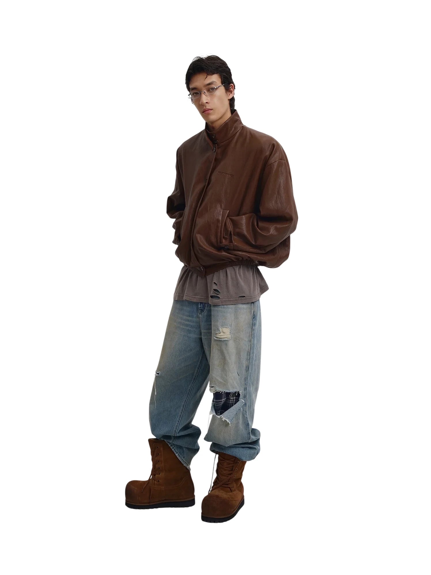 MASONPRINCE Oversized Retro Plaid Faux Leather Harrington Jacket