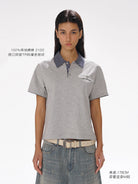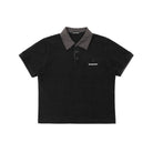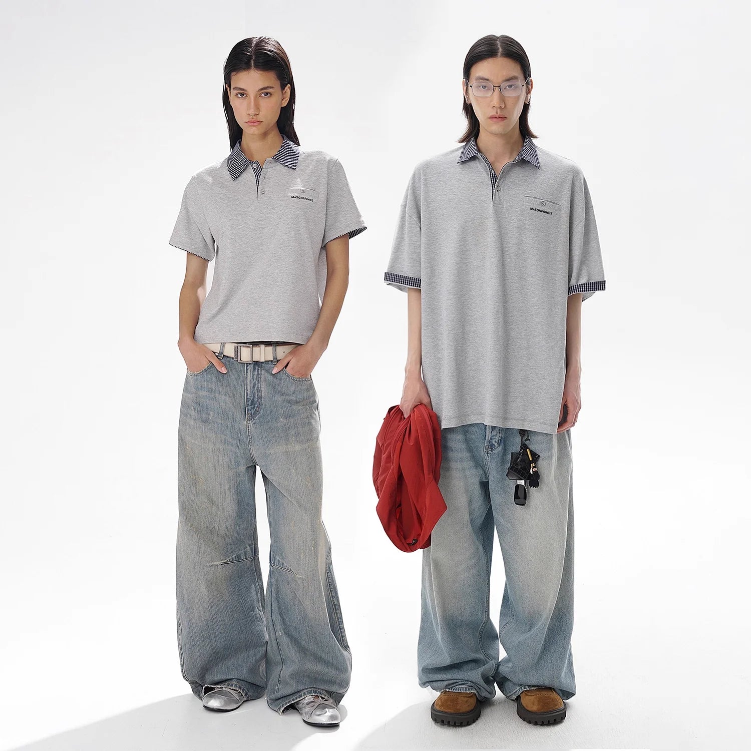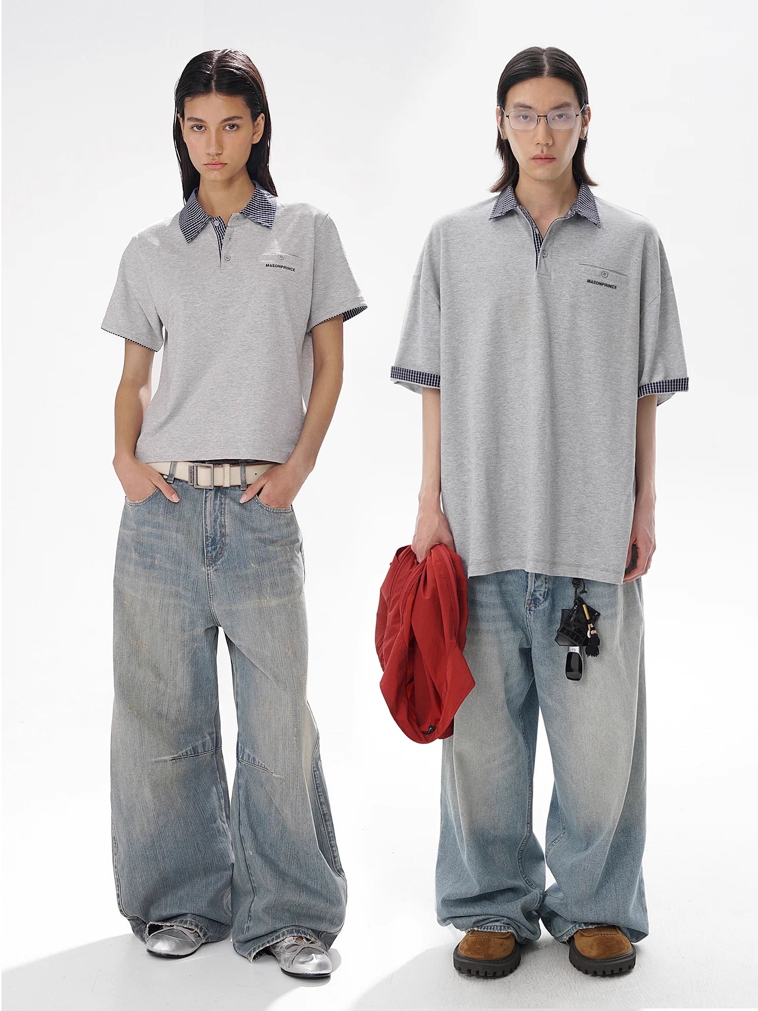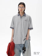 This short-sleeve polo shirt is crafted from comfortable piqué cotton and features distinctive plaid-trim detailing along the collar and sleeve edges. Available in both loose and fitted versions, the shirt offers a relaxed, streetwear-inspired silhouette perfect for casual styling.