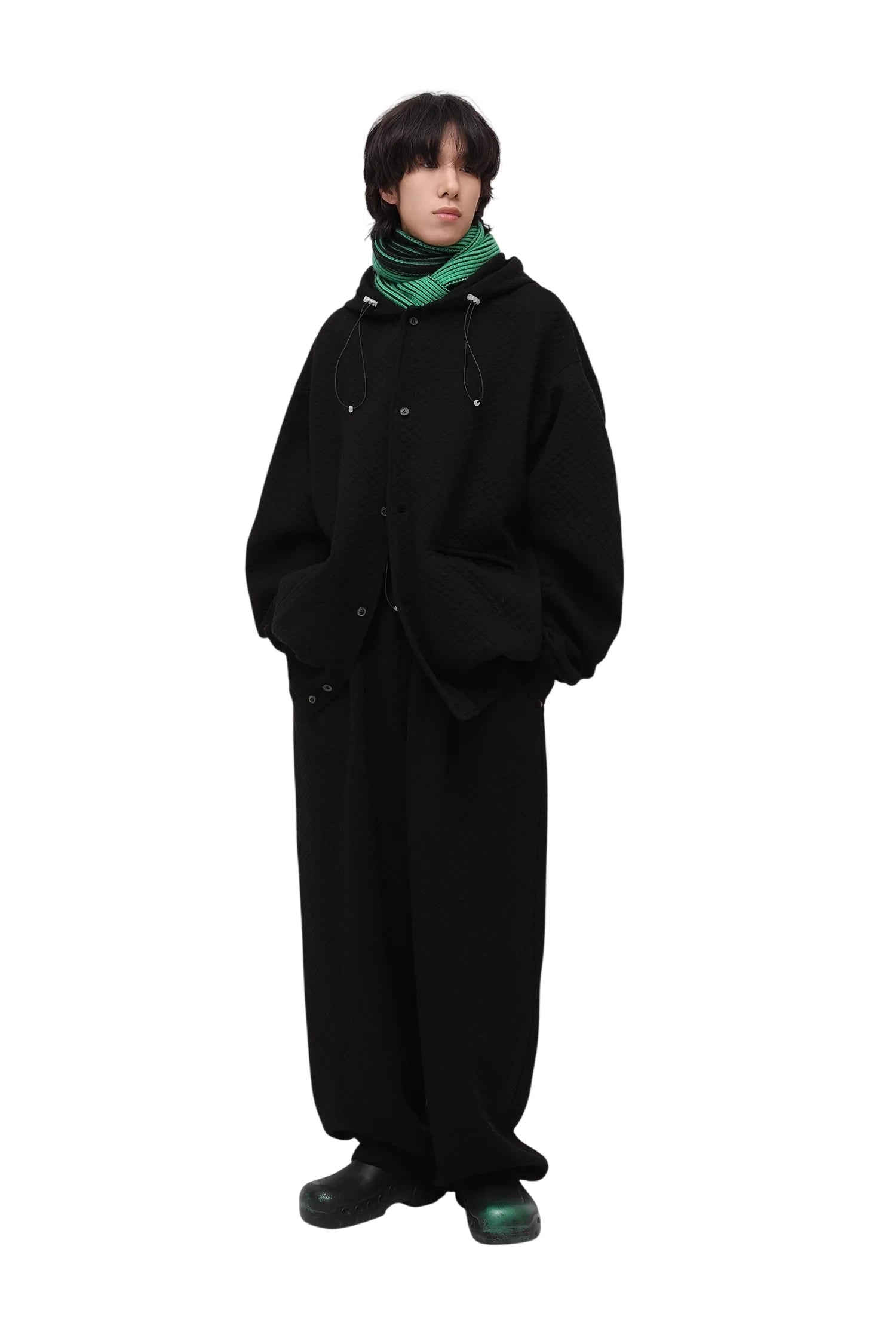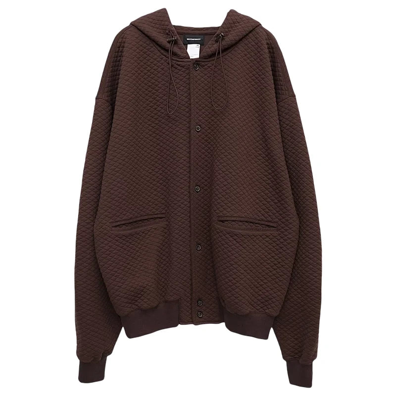 Make a bold statement with this men’s streetwear-inspired quilted baseball jacket. Featuring a distinctive dark pattern and a cozy, oversized silhouette, this jacket includes ribbed cuffs, hemline, and front button fastening. Functional flap pockets complete the look, offering both style and practicality. Perfect for elevating your nighttime urban ensemble.