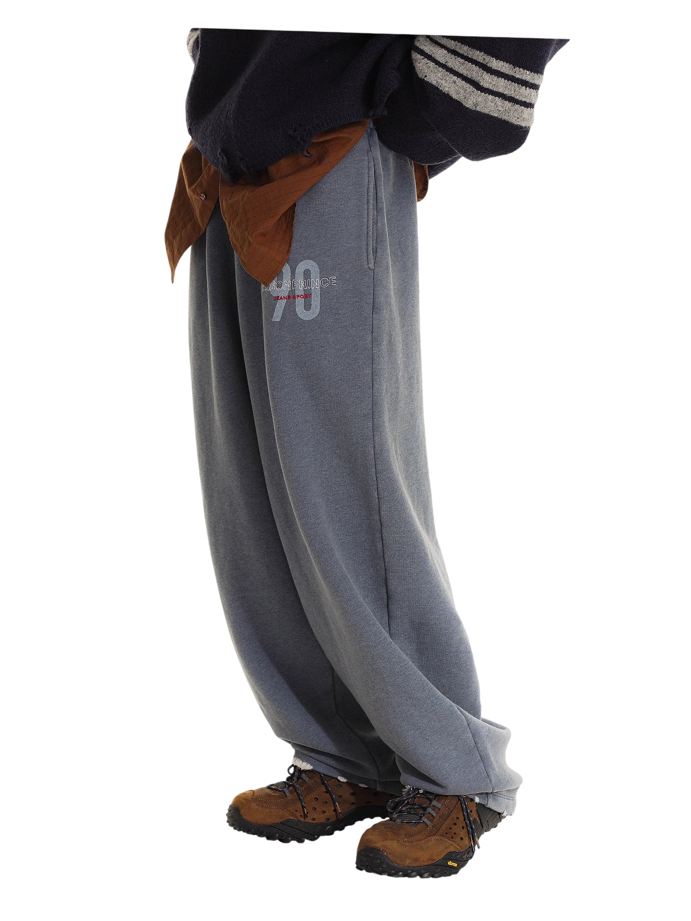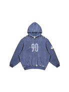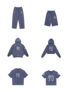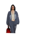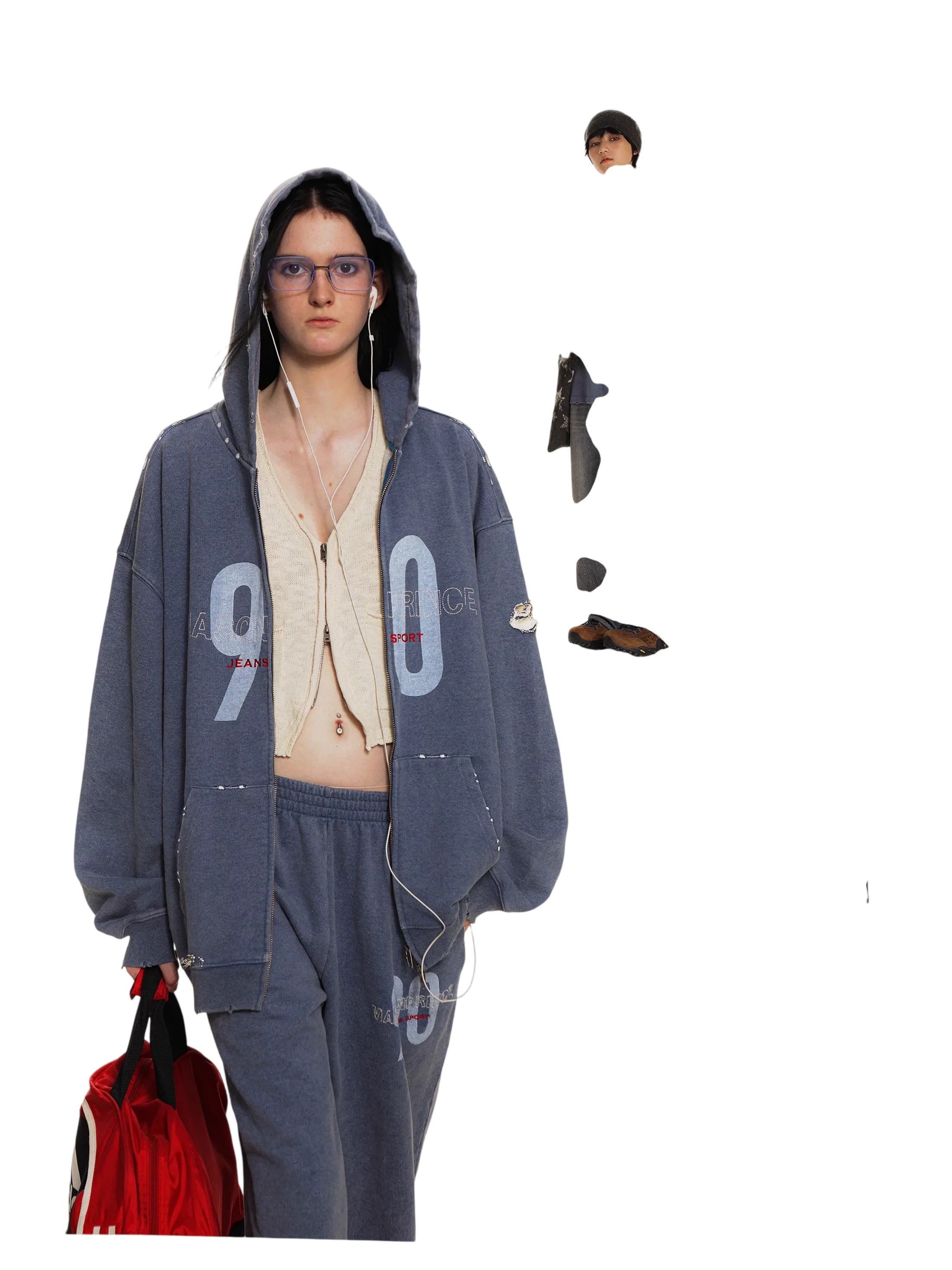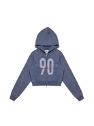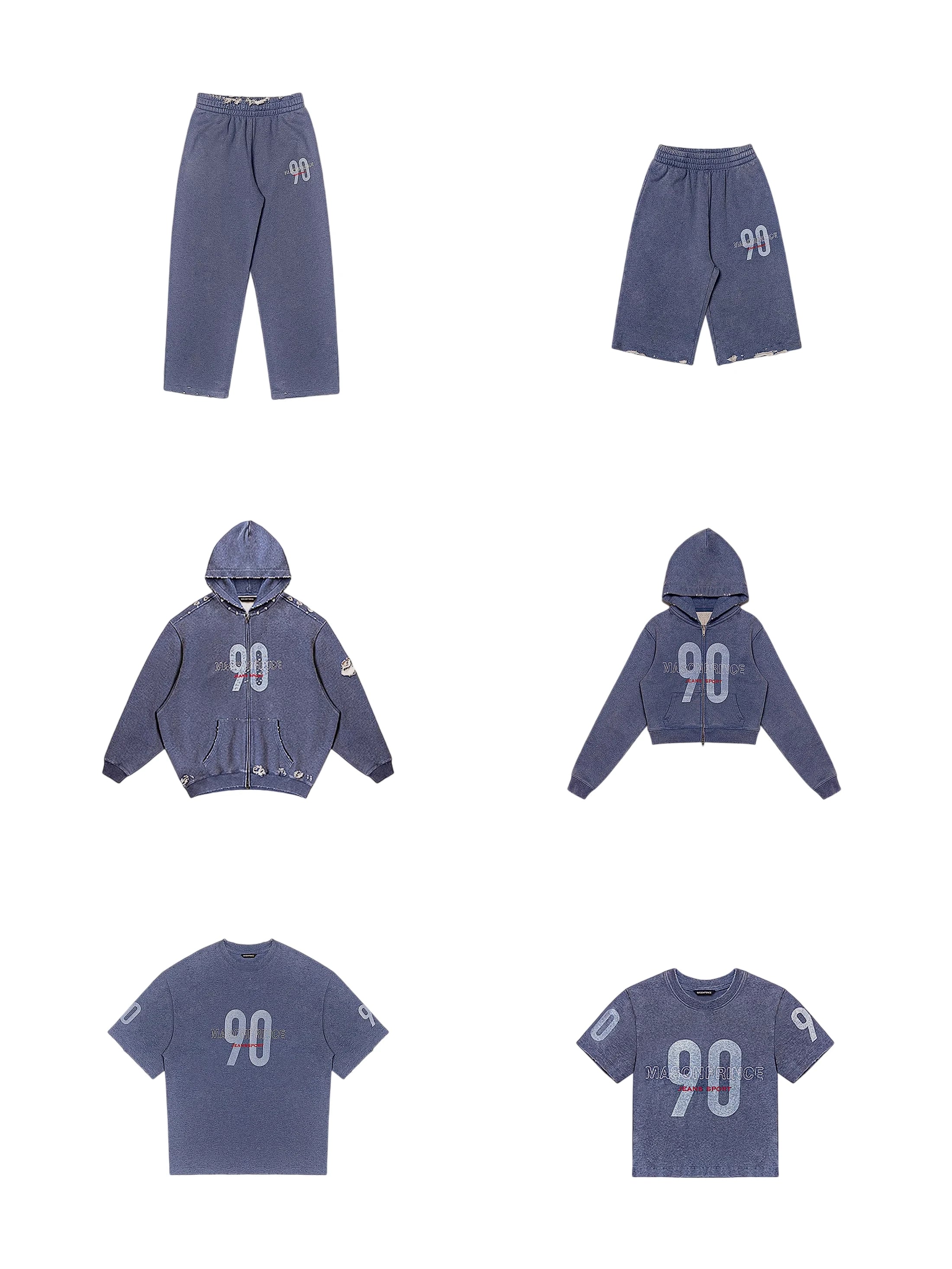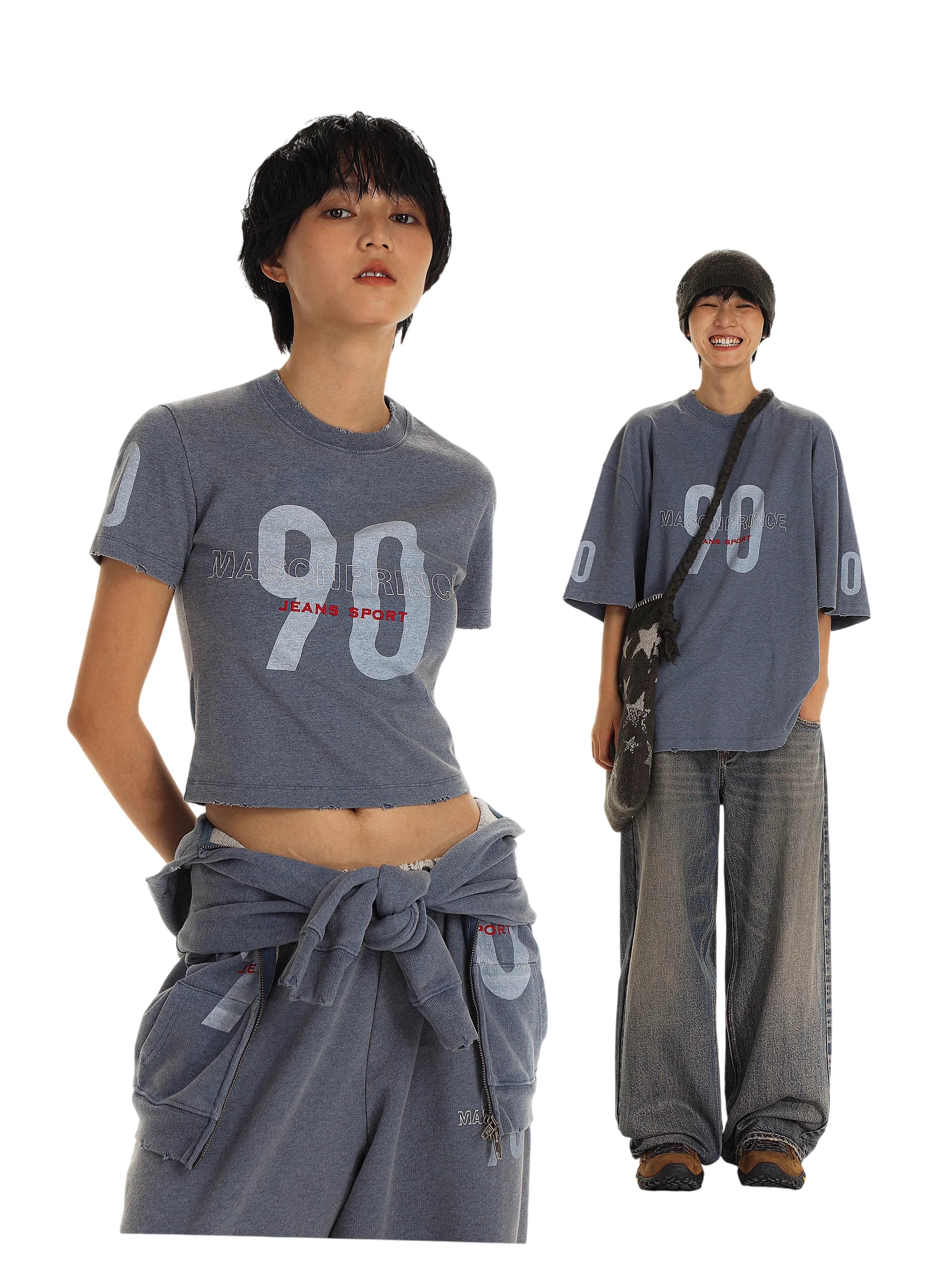 Embrace laid-back streetwear style with this retro 90s-inspired casual outfit set. Designed for both men and women, the set includes a washed blue oversized zip-up hoodie, relaxed-fit sweatpants, and a loose graphic T-shirt featuring bold '90' and 'JEANS SPORT' prints. The hoodie is paired with a cropped cream top for a layered look, perfect for early autumn wear. With its comfortable fit and vintage aesthetic, this outfit delivers both versatility and youthful flair.
