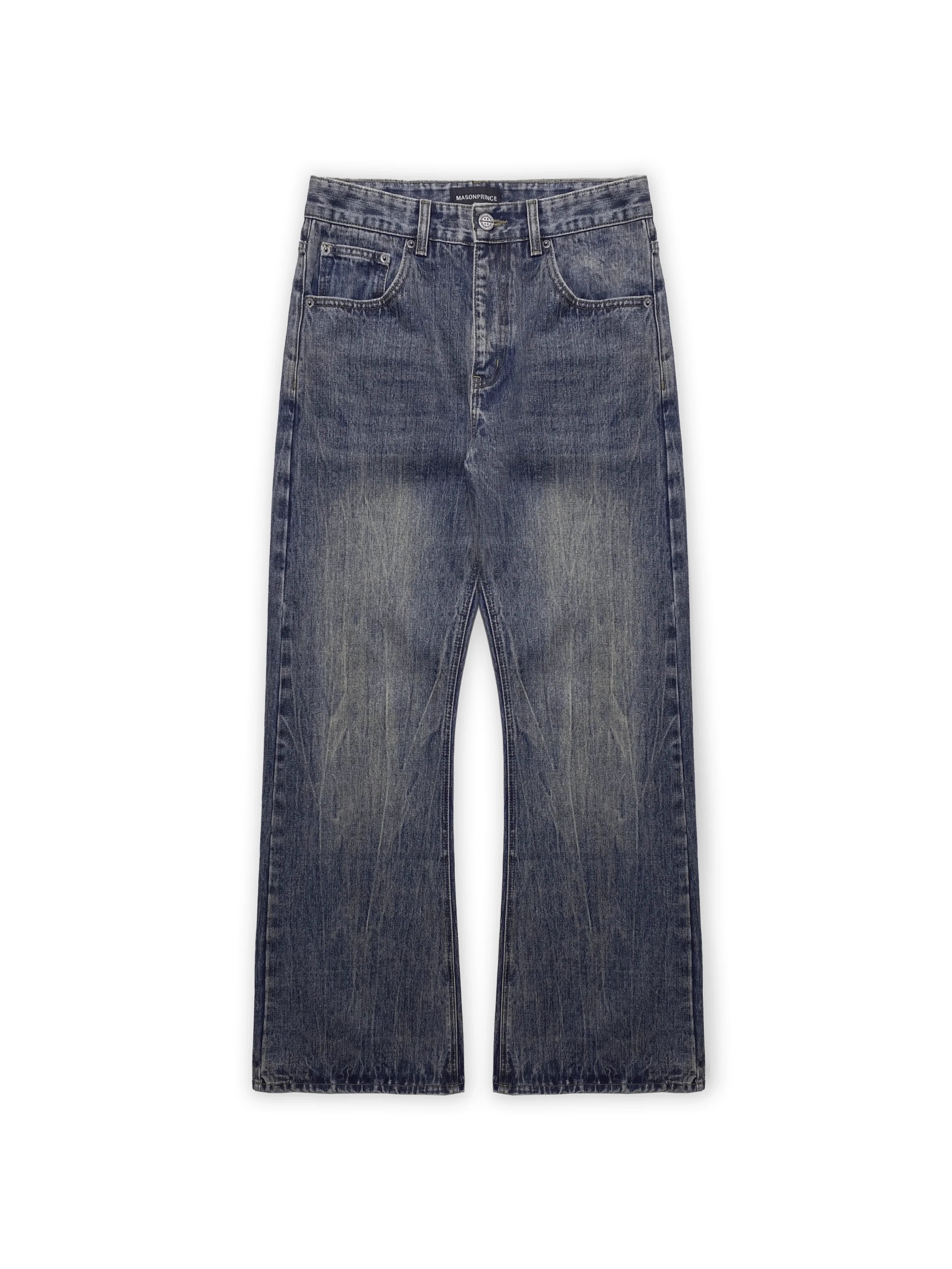 MASONPRINCE Retro Distressed Flared Denim Jeans with Chain Detail