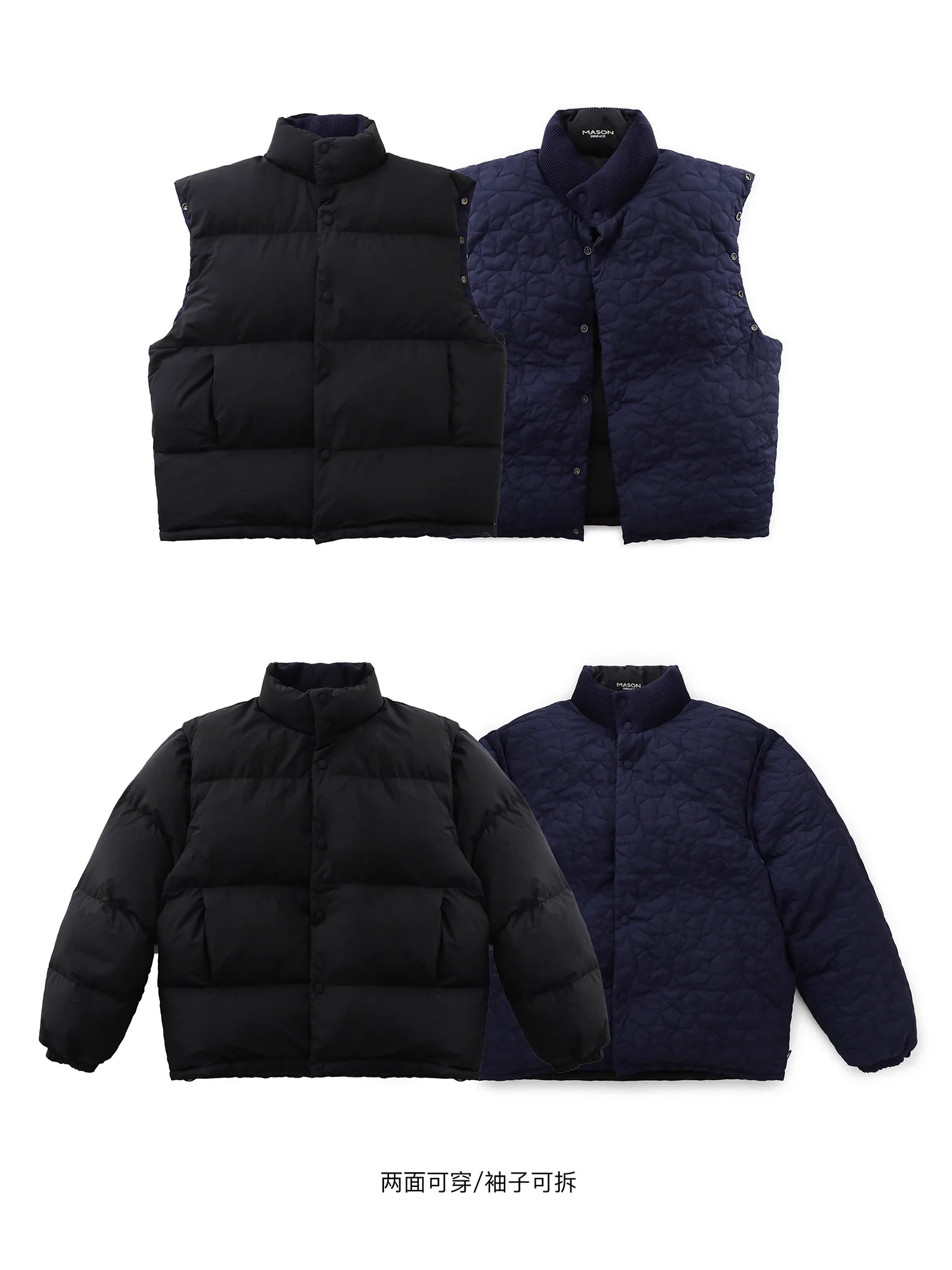 MASONPRINCE Reversible Quilted Down Jacket with Detachable Sleeves