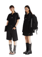 Step back into vintage style with this retro-inspired short-sleeve knit polo shirt. Featuring classic sporty stripes along the sleeves and a chest logo accent, this shirt offers a relaxed yet polished look. Its soft knit fabric ensures comfort for everyday wear, while the short sleeve design makes it ideal for transitional seasons. Perfect for unisex styling, pair it easily with jeans or casual bottoms for an effortlessly cool outfit.