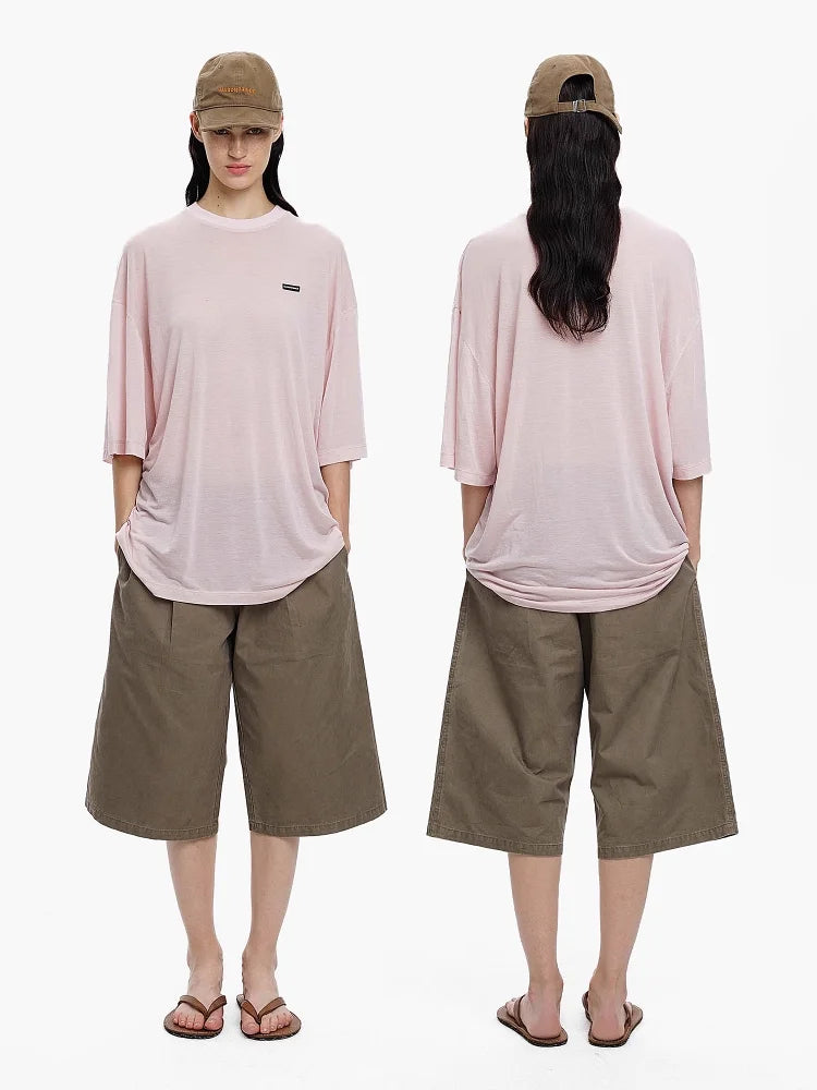 Elevate your casual wardrobe with this lightweight oversized t-shirt, crafted from a premium silk-lyocell blend for breathability and comfort. Designed in a relaxed silhouette with elbow-length sleeves, this pastel pink tee is perfect for warm-weather lounging or laid-back street style.