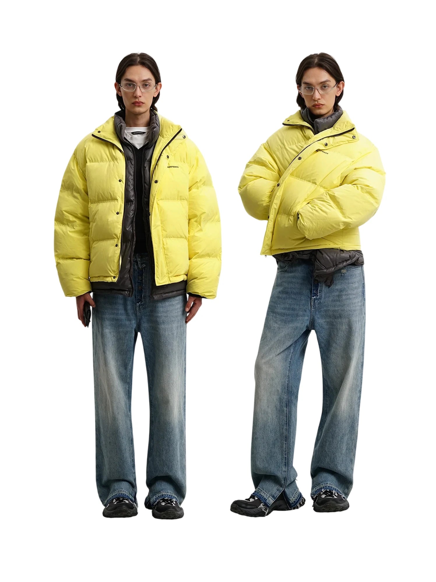 MASONPRINCE Two-Piece Colorblock Down Jacket with 'Mom's Afraid I'm Cold' Design