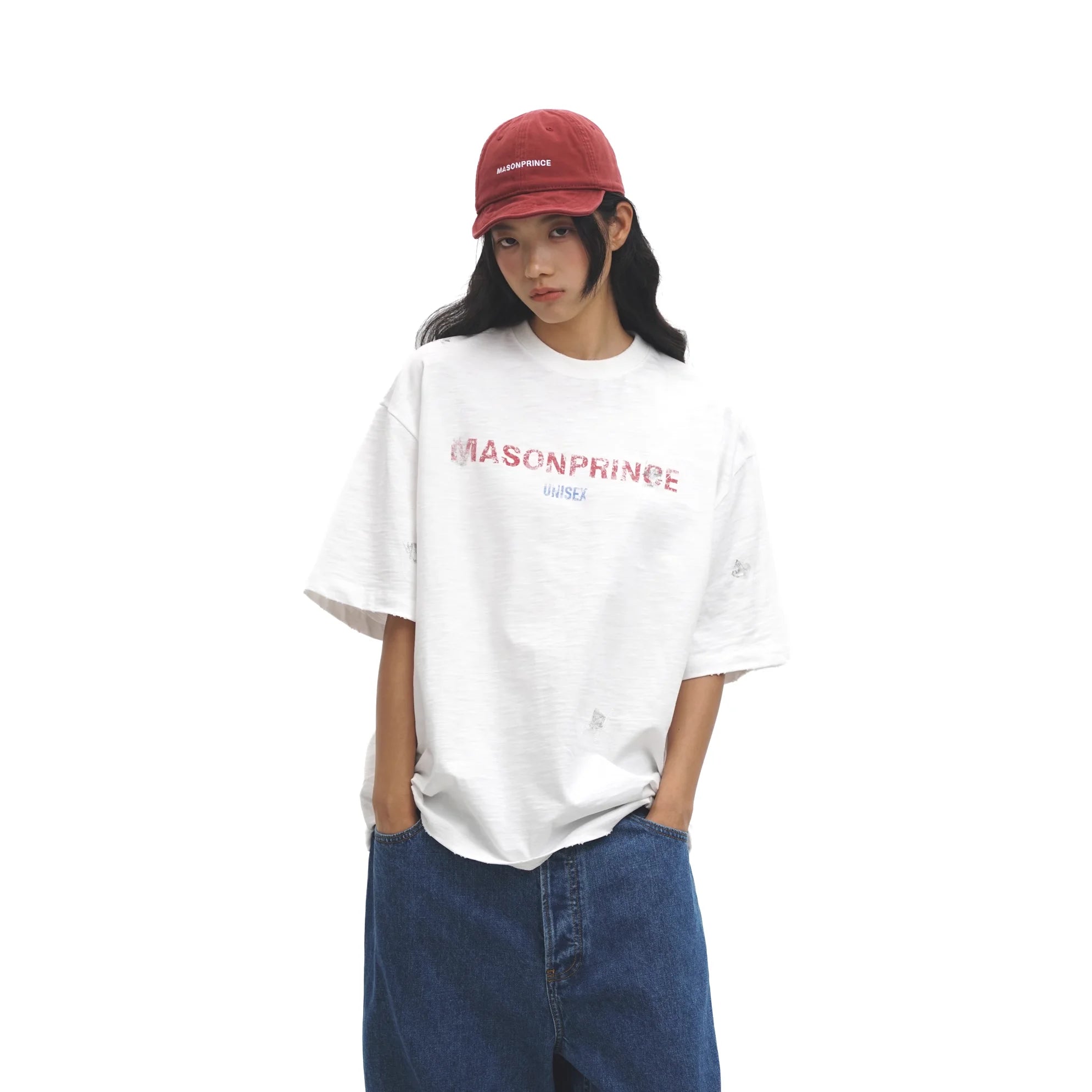 MASONPRINCE Unisex Distressed Embroidered Slub Cotton Loose T-Shirt