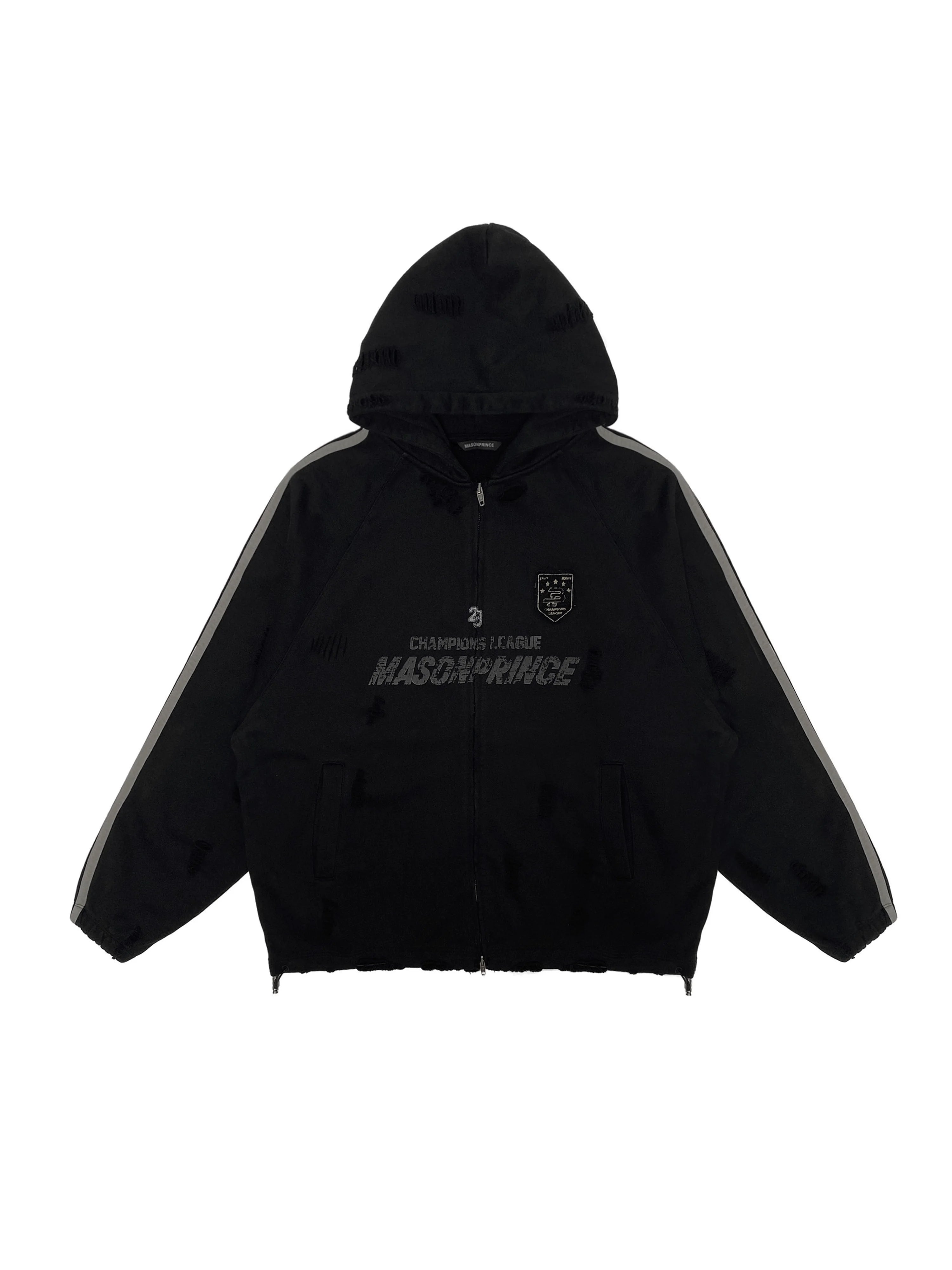 MASONPRINCE Vintage Distressed Double-Zip Multi-Fit Hoodie Cardigan