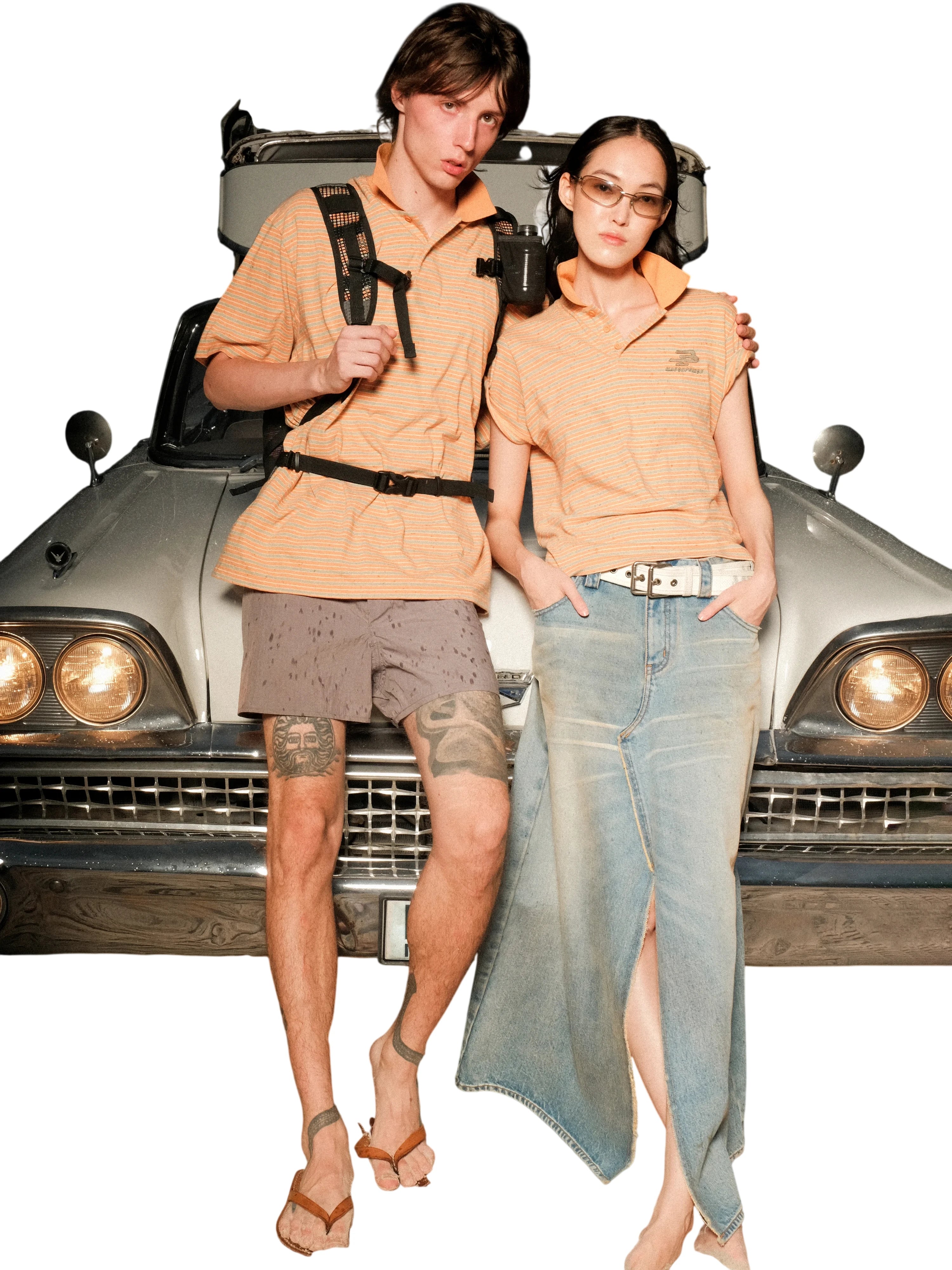 Men pair this polo with denim jeans or cargo shorts, while women opt for relaxed trousers or wide-leg shorts. Neutral and soft color variations provide a timeless aesthetic, ideal for everyday wear. Finished with sunglasses for a cool, contemporary vibe, this top is a standout addition to any outfit.