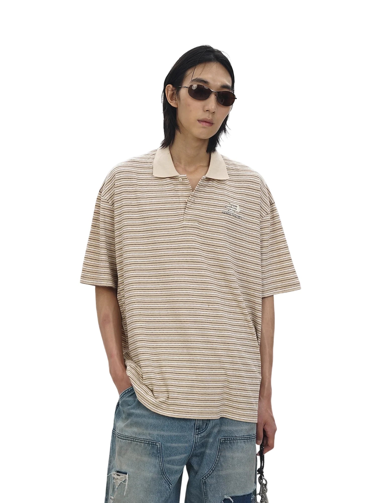 MASONPRINCE Vintage Striped Embroidered Polo Shirt