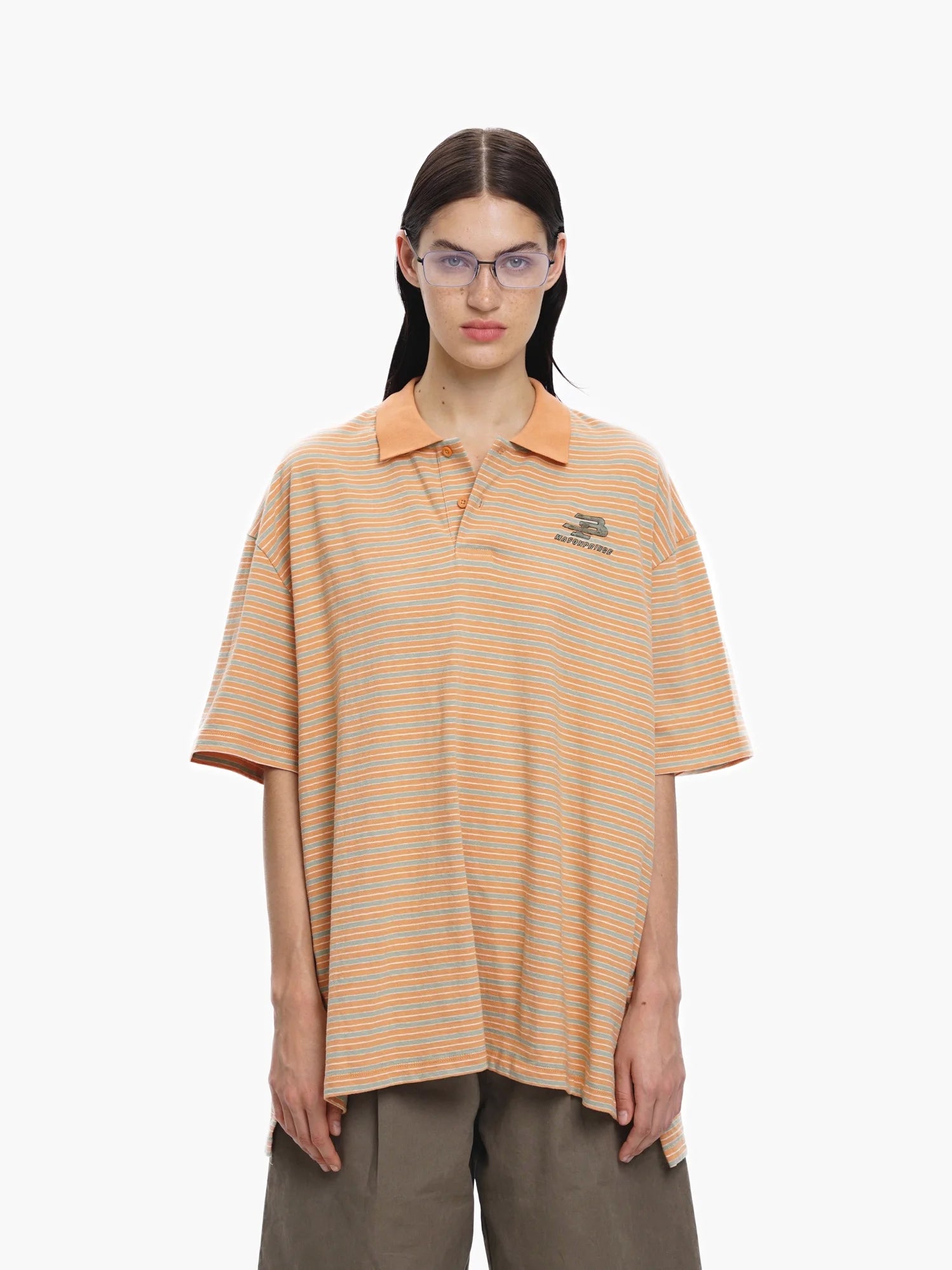 Elevate your casual wardrobe with this vintage-washed striped polo shirt featuring classic embroidered detailing. Perfect for a relaxed, street-style look, this versatile polo is styled by both men and women, showcasing a range of fits from tailored to oversized.