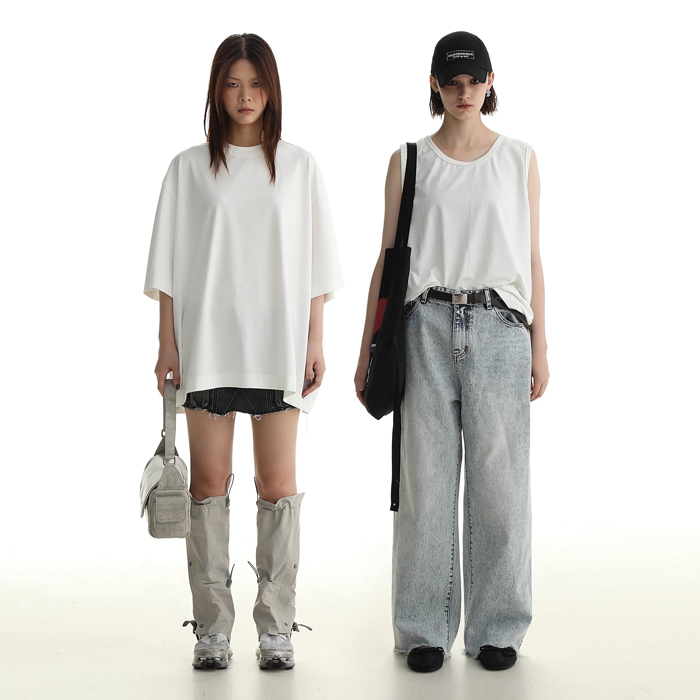 Elevate your summer wardrobe with this stylish and sustainable crop top and tank set designed for women. Featuring a classic black and white palette, this set includes a loose short-sleeve T-shirt and a sleeveless tank top, perfect for mixing and matching. Ideal for warm-weather days, the lightweight fabric offers comfort with a cool and casual streetwear vibe.