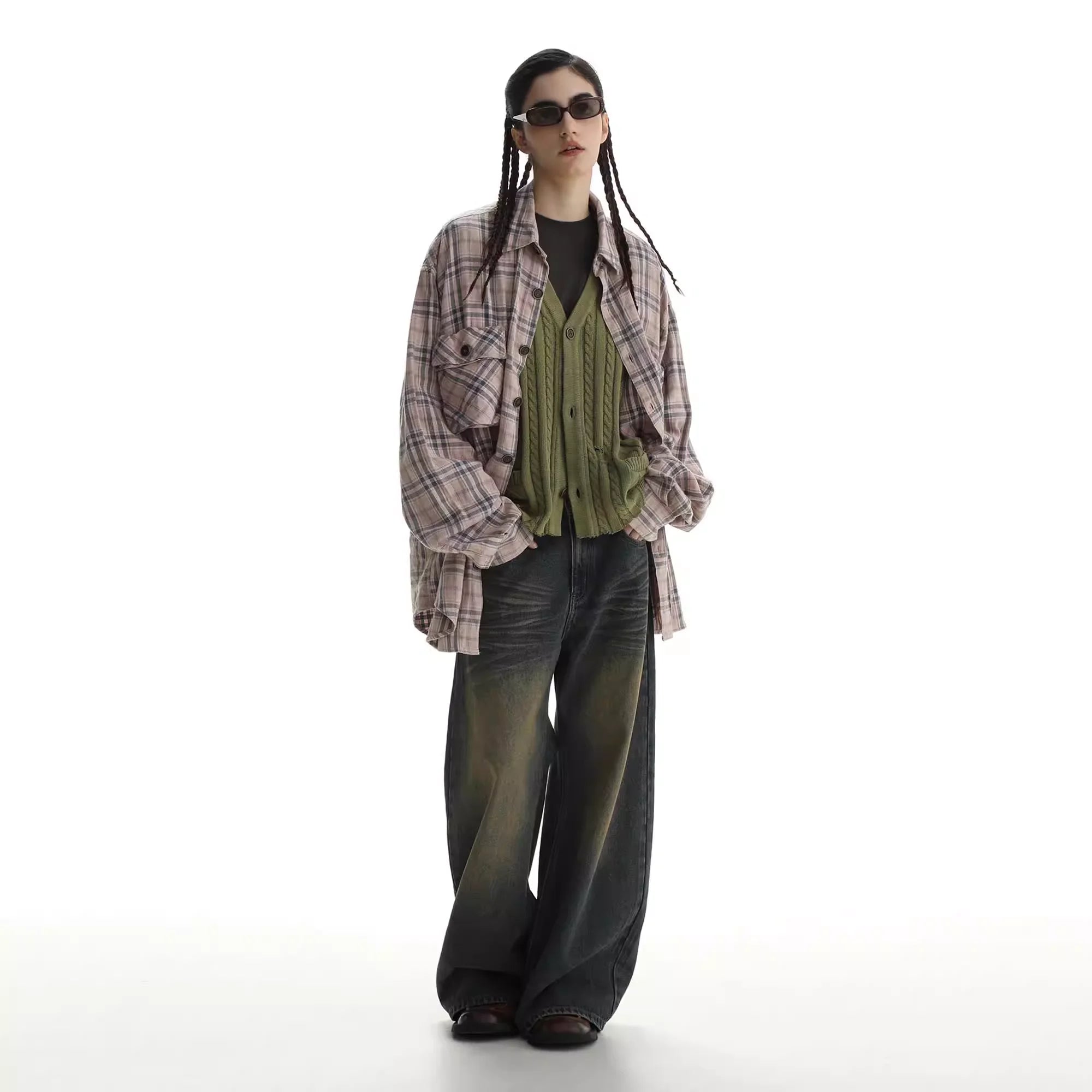 Stay warm and stylish with this women's fleece plaid flannel shirt, ideal for autumn and winter. Featuring a soft 3D pocket design and a relaxed, open-front fit, this shirt is perfect for layering over sweaters or base tops. The light pink and grey plaid pattern complements seasonal wardrobes, while the cozy fleece material adds comfort. Pair it with jeans for an effortless street-style look.