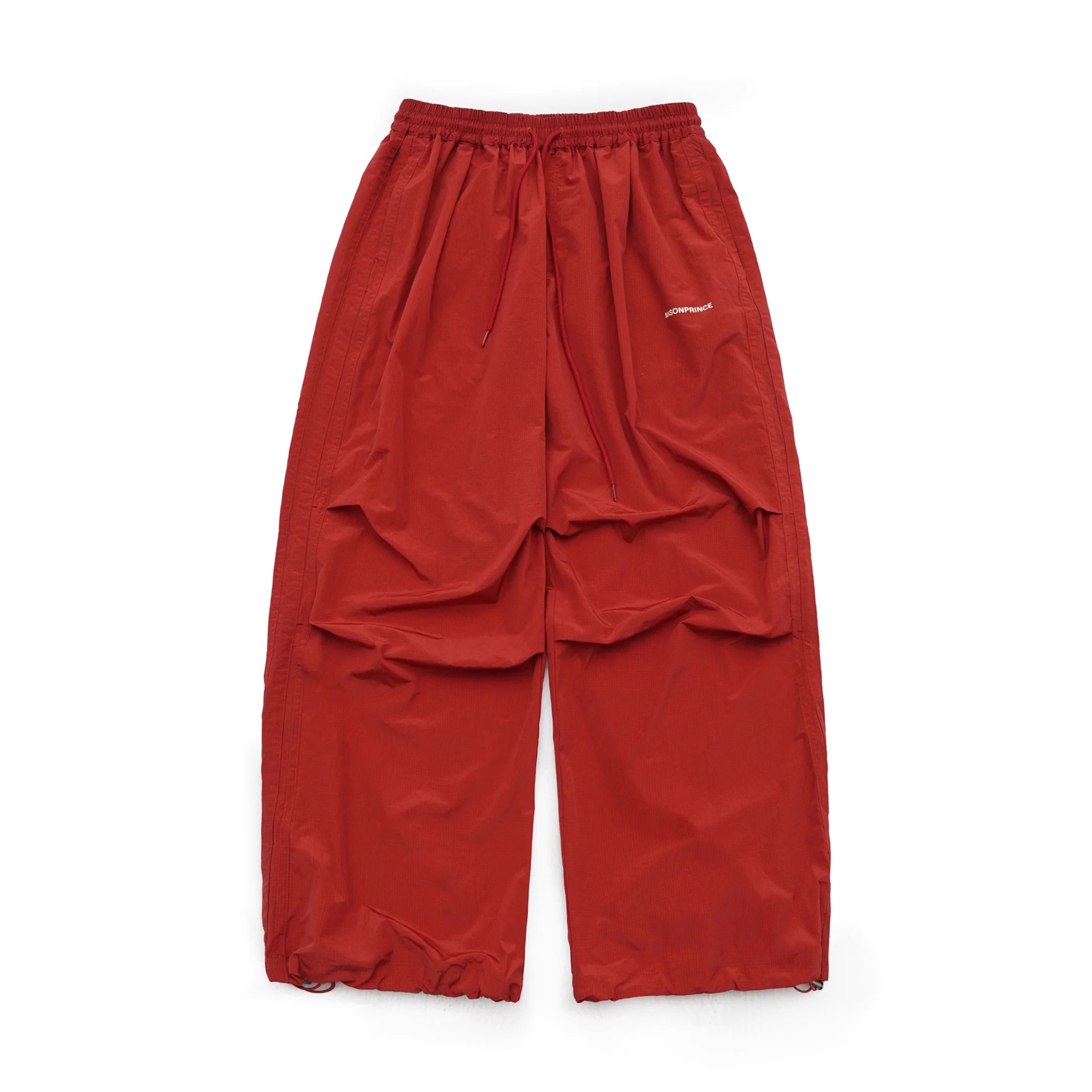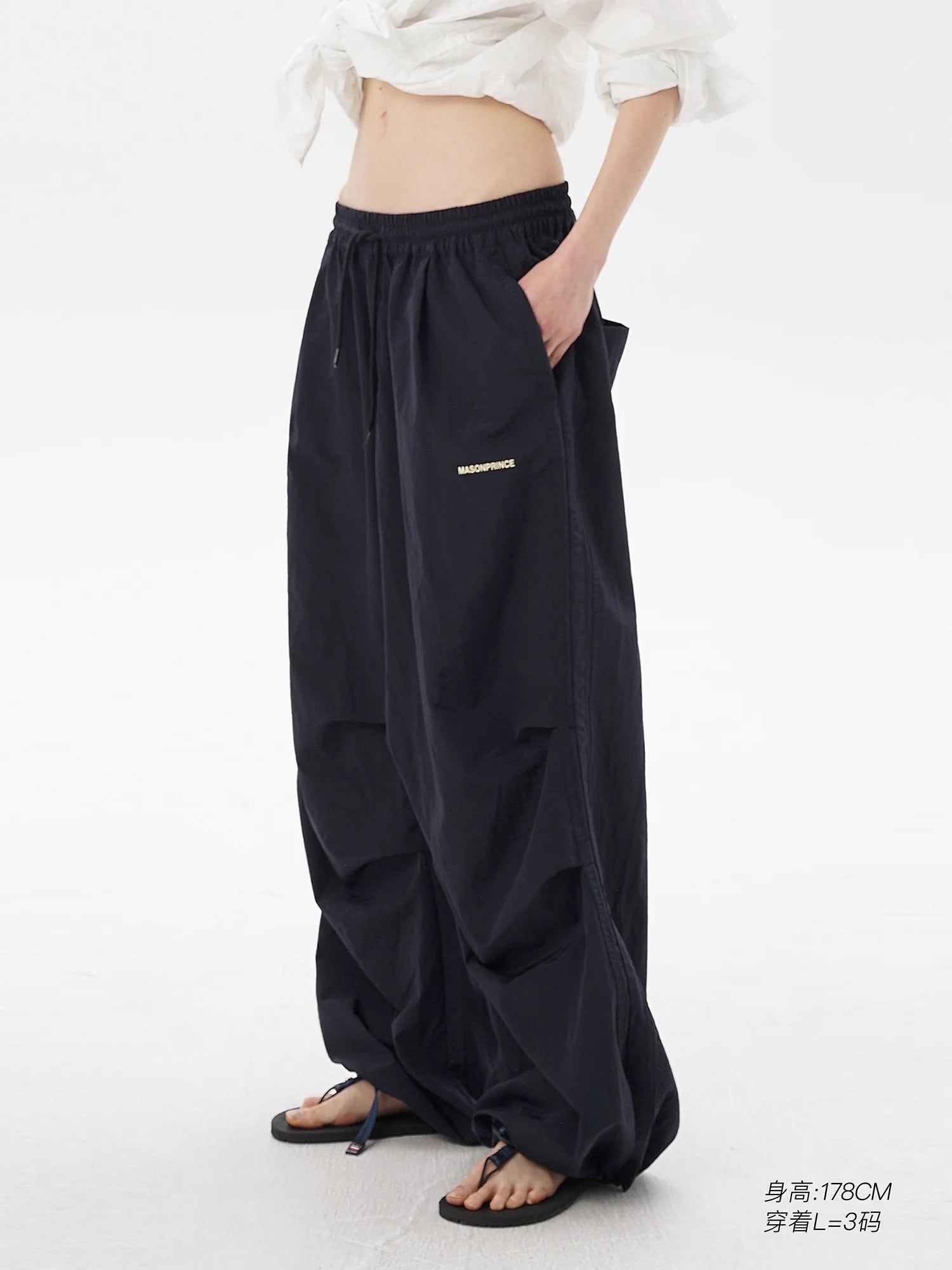 These women's lightweight paratrooper pants are crafted from durable dark plaid nylon fabric, offering a contemporary twist on classic military-inspired style. The design features a crinkled, oversized silhouette that delivers both comfort and fashion-forward appeal. A subtle logo tab accents the left thigh, adding a discreet touch of detail. These versatile pants are perfect for outdoor adventures or casual streetwear looks.