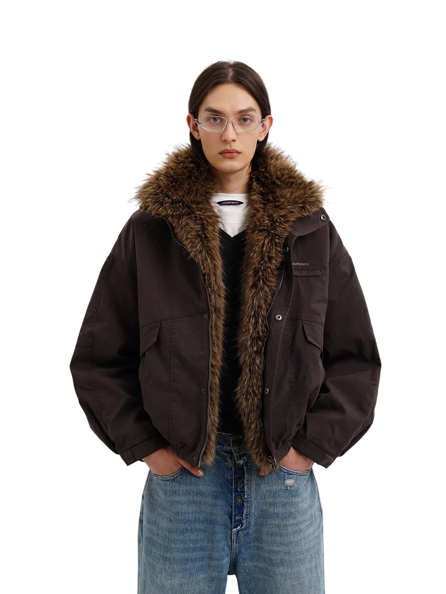 MASONPRINCE Women's Oversized Jacket with Detachable Faux Fur Collar
