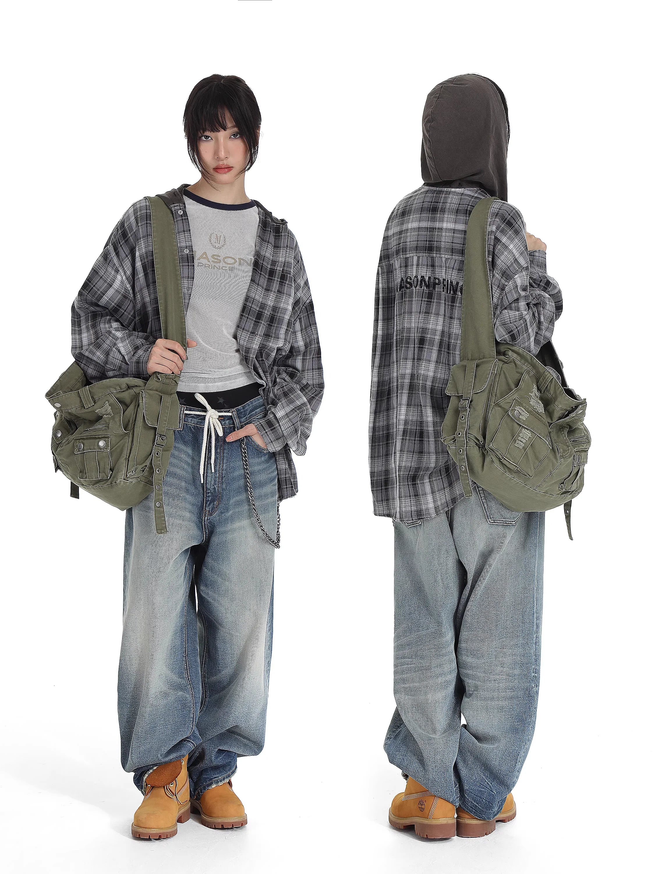 MASONPRINCE Women's Oversized Plaid Hooded Shirt with Sun Protection