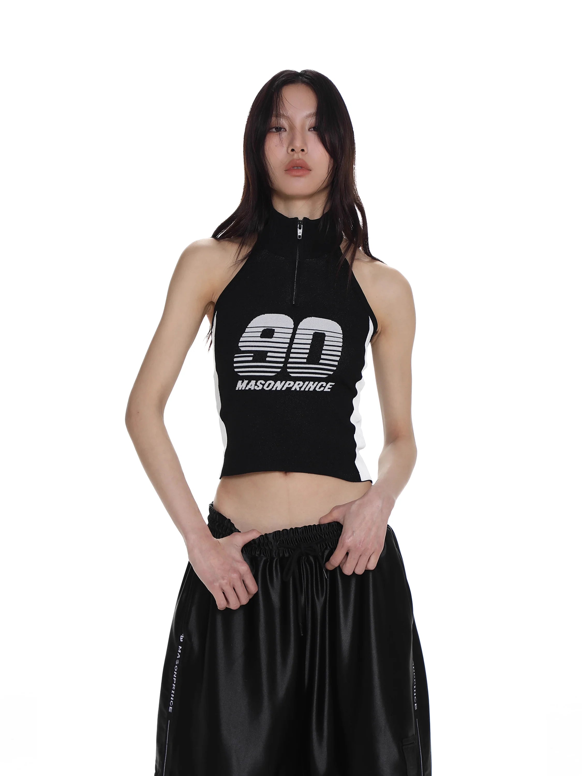 Upgrade your activewear collection with this stylish two-piece set designed for women. The ensemble includes a sleek black long-sleeve romper with contrasting white sleeves and side panels, highlighted by sporty horizontal stripes on the arms and a convenient front zip-up closure. Complementing the romper is a bold sleeveless crop top featuring a high zip collar and striking white accents. Graphic text and numeric details lend a retro-sporty vibe, making this set both functional and fashion-forward for spring cycling or everyday workouts.