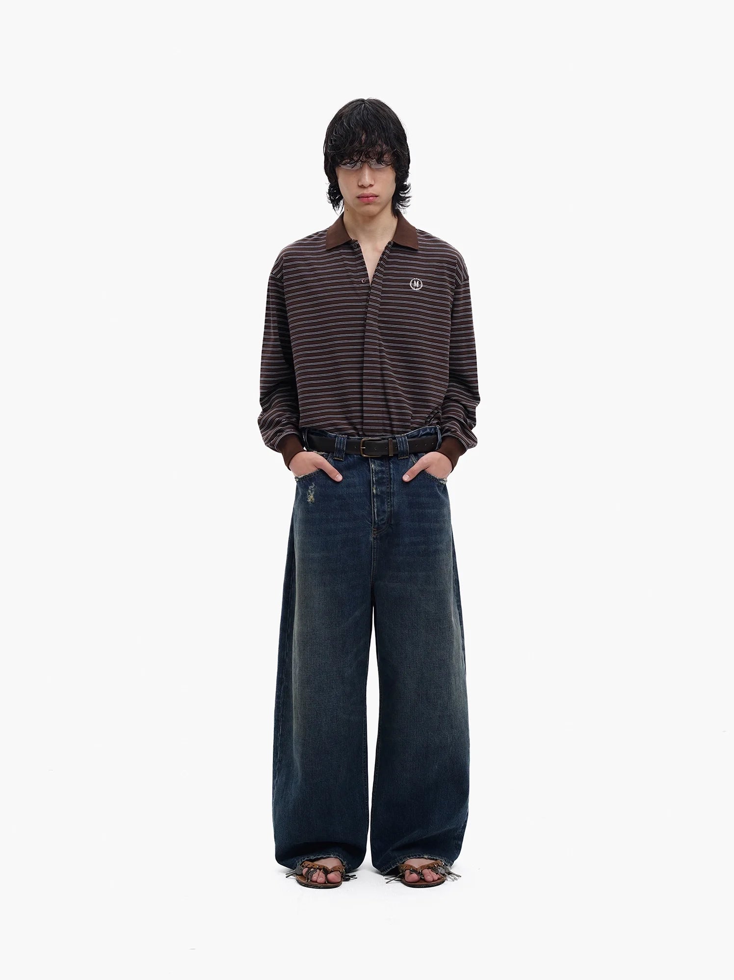 Elevate your casual autumn wardrobe with this stylish women's long-sleeve cardigan. Made from soft, washed cotton, this polo-style top features timeless black and brown horizontal stripes and a refined black collar. The subtle embroidered logo on the left chest adds a classic touch while maintaining a minimalist look.