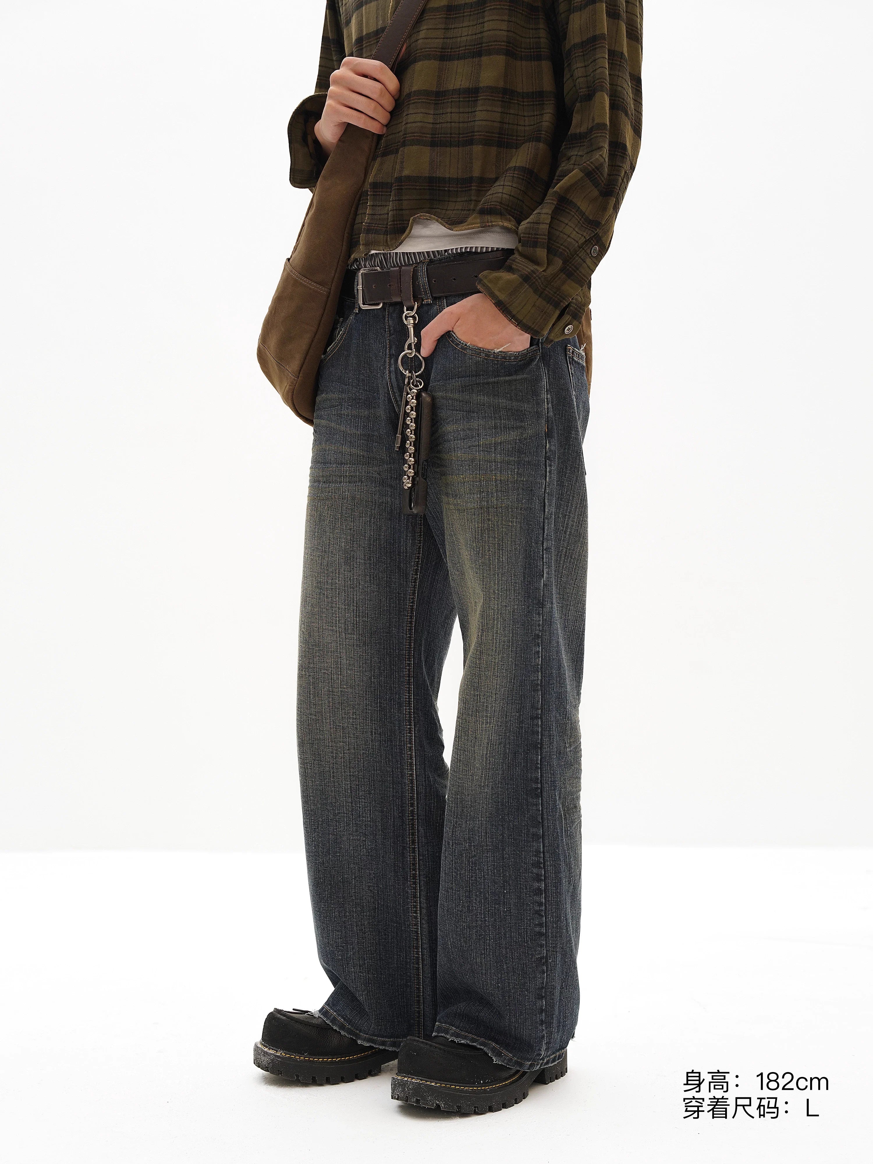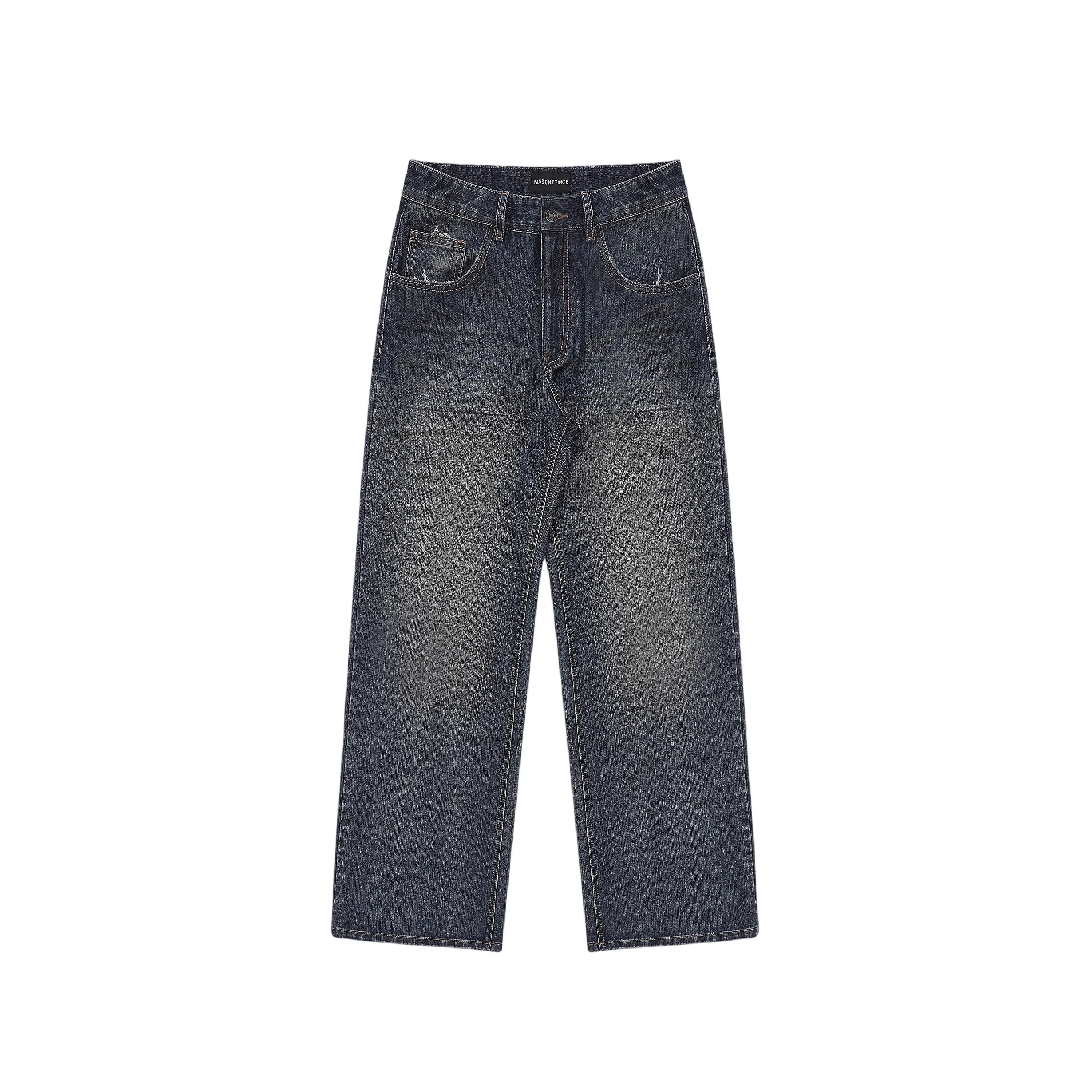 Elevate your casual wardrobe with these women's vintage-style A-line denim jeans. Featuring a flattering wide-leg silhouette and a comfortable mid-low waist, these jeans offer a timeless dark wash finish with a subtle slub texture. The classic five-pocket design, contrast stitching, and slight fade on the front and thighs add to their retro-inspired appeal. Finished with a button and zip closure, these jeans combine effortless style with everyday comfort.