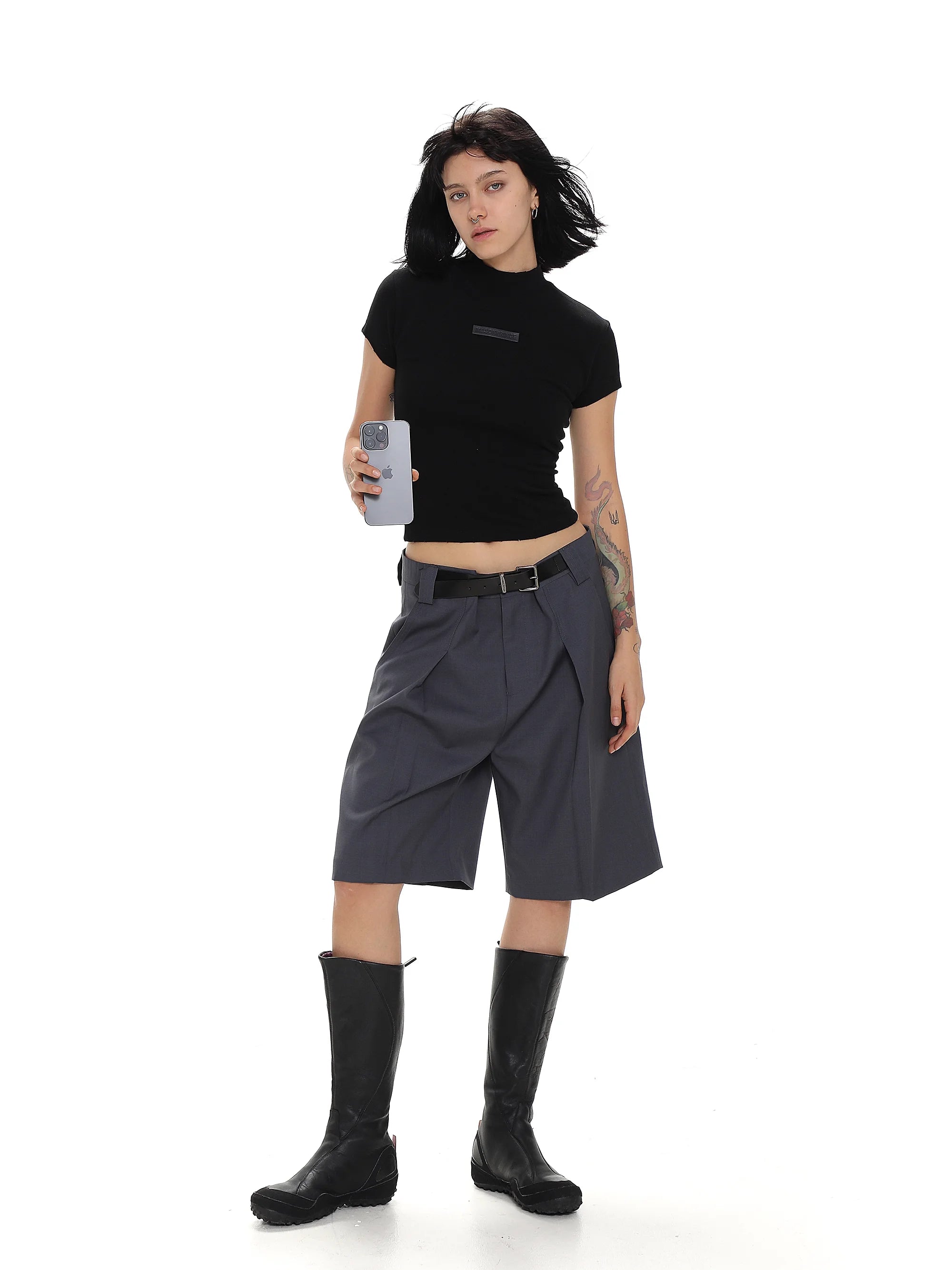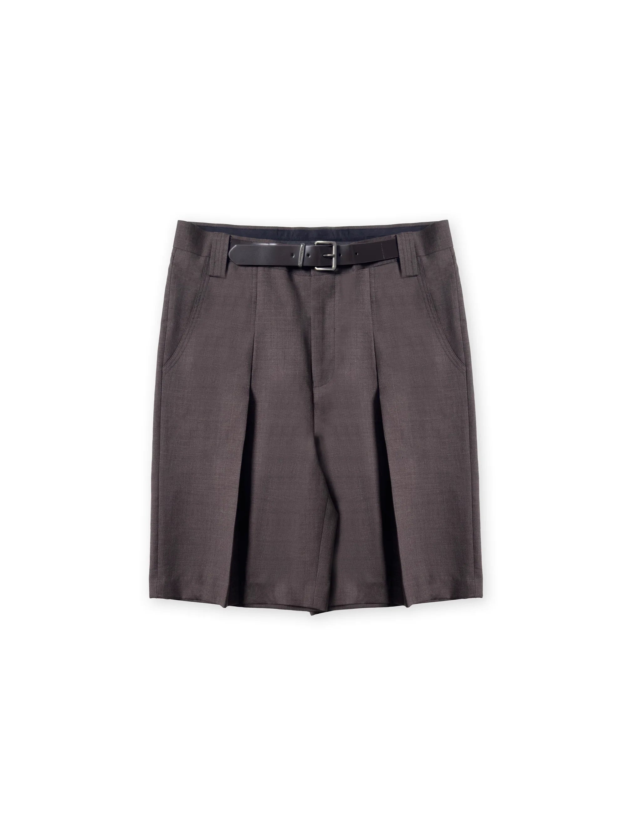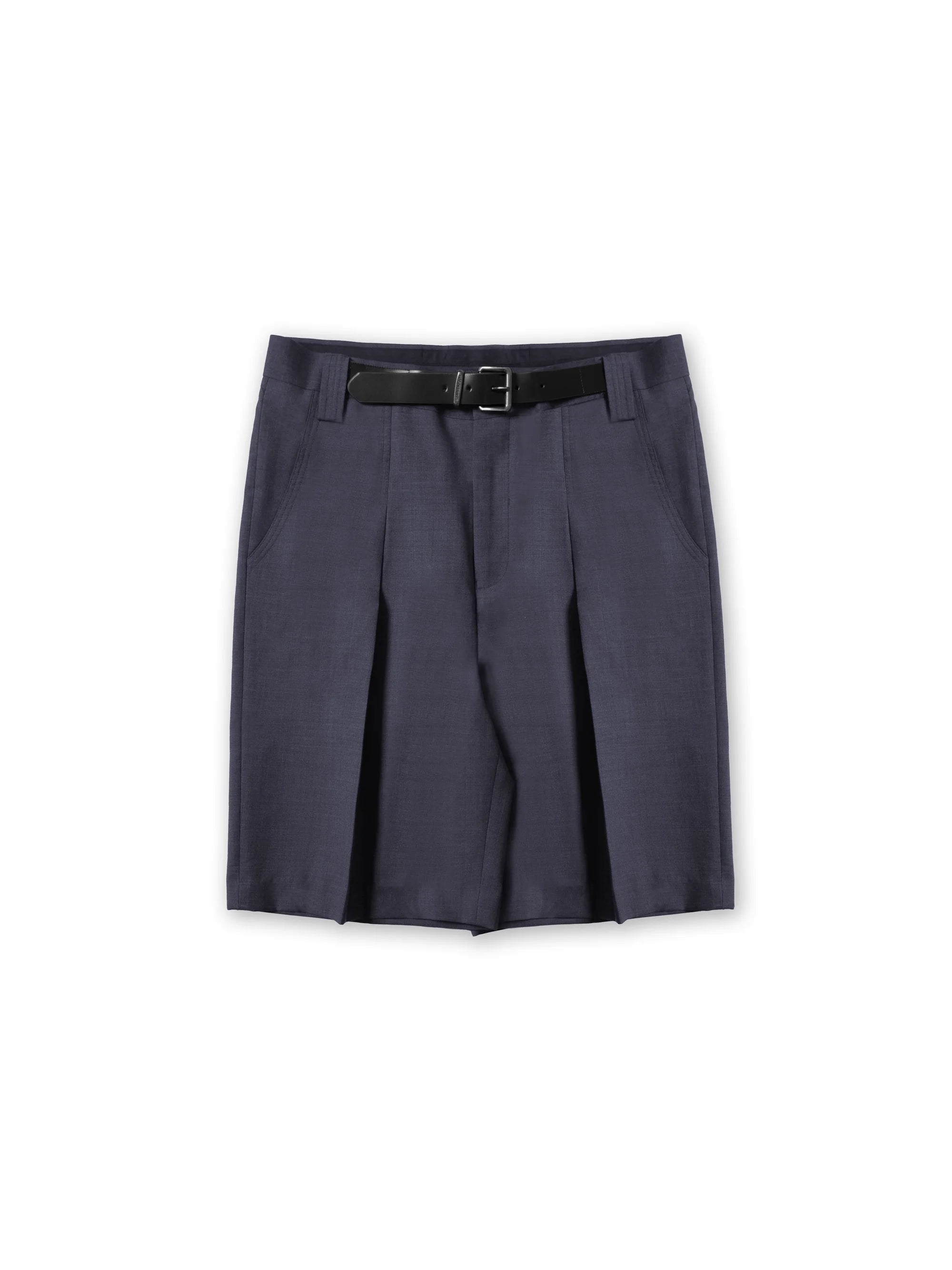 MASONPRINCE Women's Wool-Blend Pleated High-Waisted Shorts with Belt