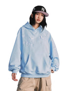 Embrace effortless street style with this women's oversized hooded sweatshirt, perfect for autumn layering. Featuring a bold 3D butterfly and star graphic design with prominent text, this casual hoodie blends American streetwear and commuter fashion. The soft, loose fit ensures comfort, while the spacious front pocket and classic drawstring hood add functionality to its modern aesthetic. Ideal for couples or solo statement wear.