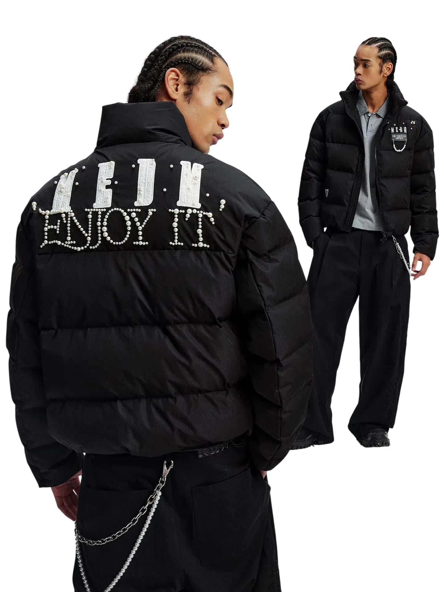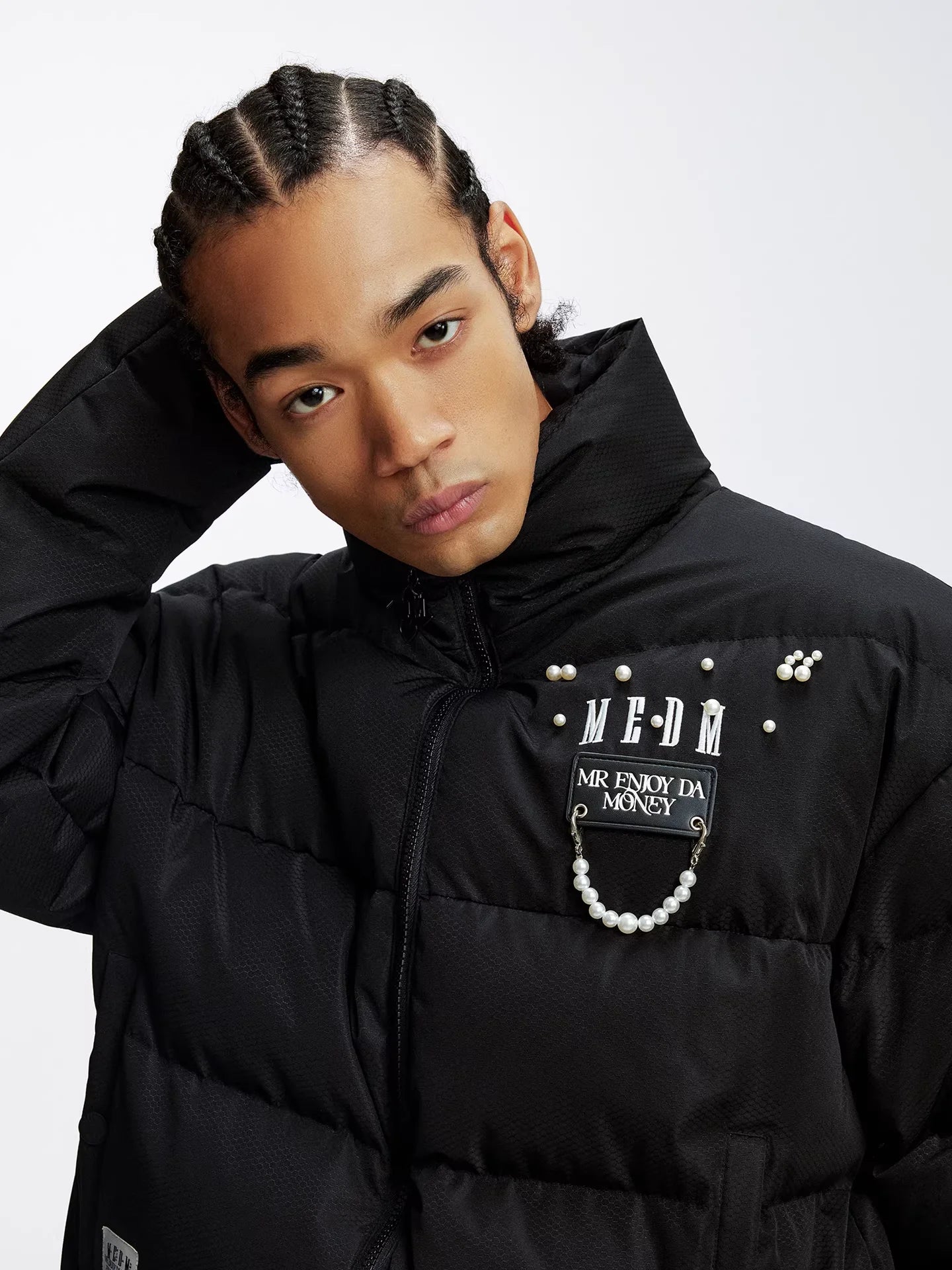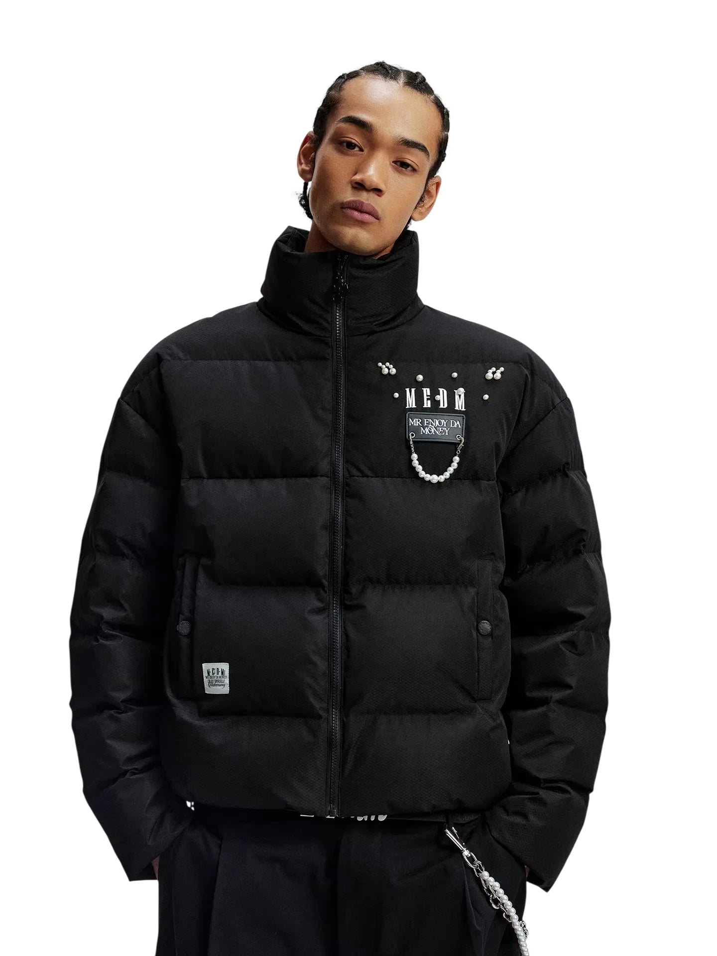 MEDM 90% Duck Down Colorblock Puffer Jacket with Pearl Shoulder Details
