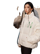 Stay warm and stylish this winter with this men's stand collar down jacket. Featuring 90% duck down insulation, this coat offers exceptional warmth and comfort in cold weather. The design includes embroidered lettering on the chest and a full zipper closure for added convenience. Perfect for outdoor wear, this puffy white jacket combines national-style elements with a modern urban aesthetic.