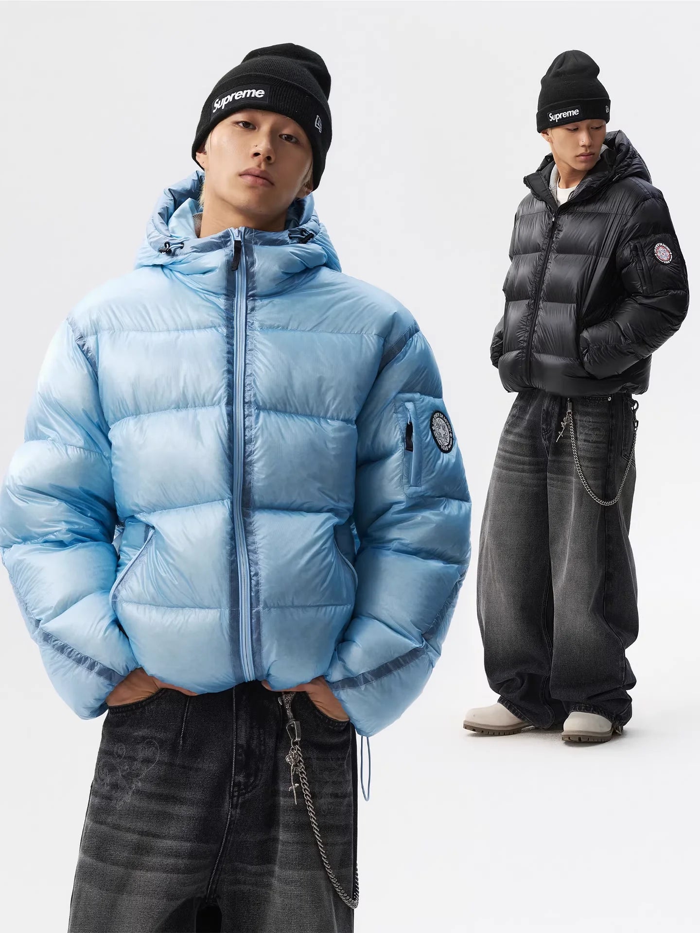 Weighing only 189g in size XL, this down jacket is soft, warm, and easy to wear, making it perfect for casual winter outings. Ideal for couples looking for coordinated outerwear with American-inspired design.
