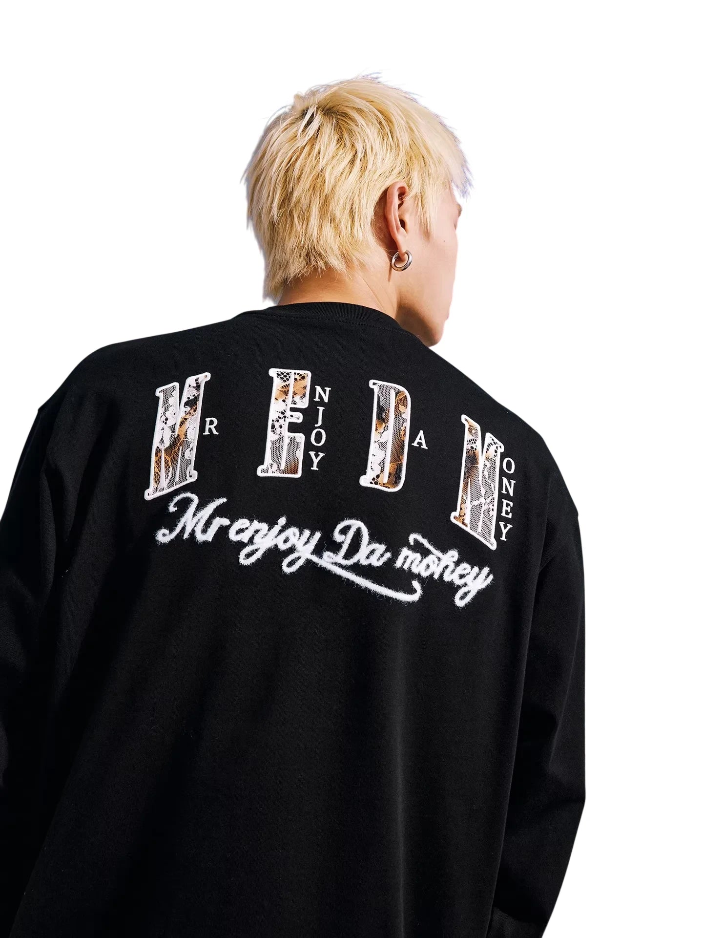 MEDM Black Burnt Lace Graphic Long Sleeve T-Shirt
