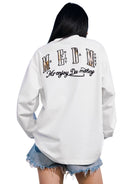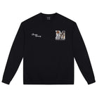Make a bold statement with this unisex black long sleeve t-shirt featuring a unique burnt lace design and a distinctive graphic print on the back. The comfortable crew neck and loose fit offer a relaxed, casual style perfect for everyday wear. The standout back print includes large vertical lettering and a themed collage style, adding a fashionable edge to any streetwear look.