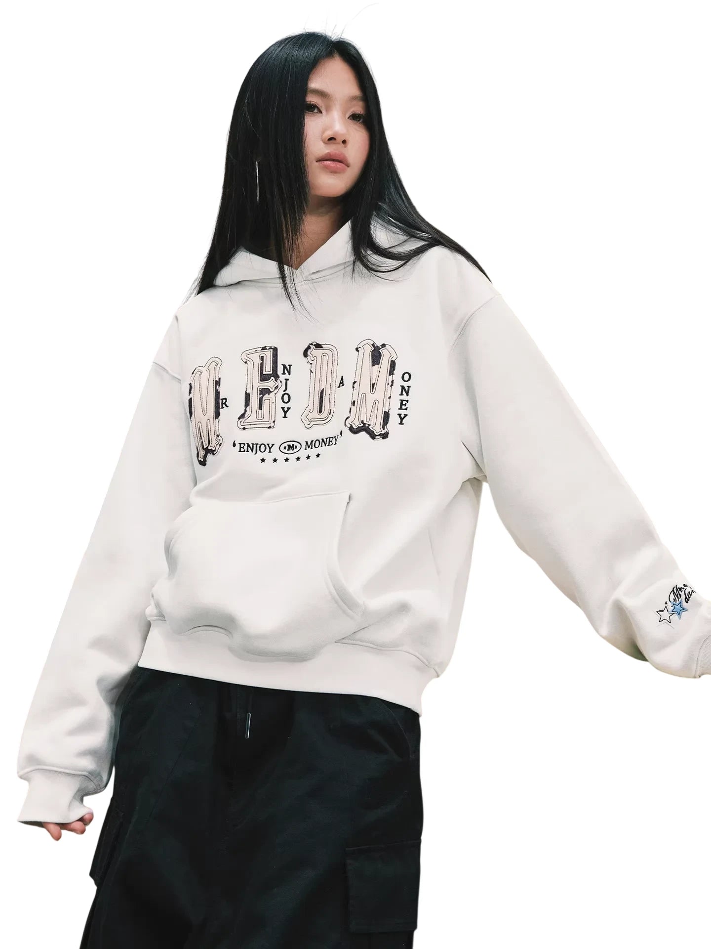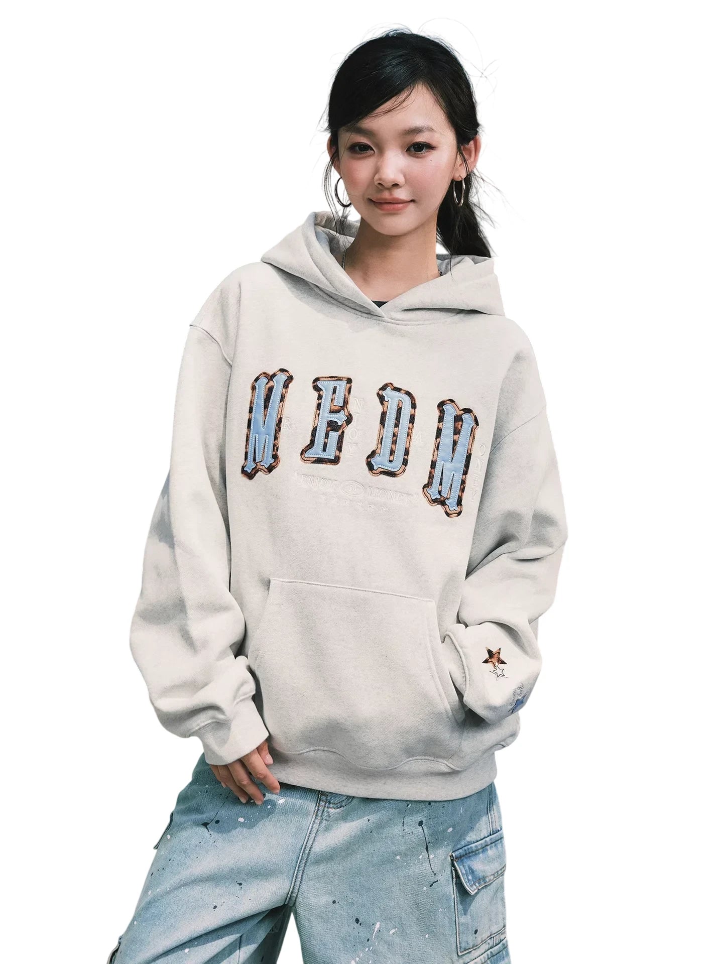 MEDM Embroidered Oversized Hooded Sweatshirt with Four-Letter Design