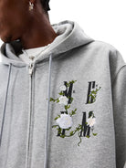 Upgrade your casual wardrobe with this unisex zip-up hoodie, perfect for spring and autumn wear. Designed with eye-catching embroidered lettering and vine-inspired detailing on the chest and sleeves, this hoodie combines comfort and standout style. Features include a drawstring hood, regular fit with slightly dropped shoulders, and a soft white hue that layers effortlessly over any outfit. Ideal for laid-back days or adding a creative edge to your streetwear look.