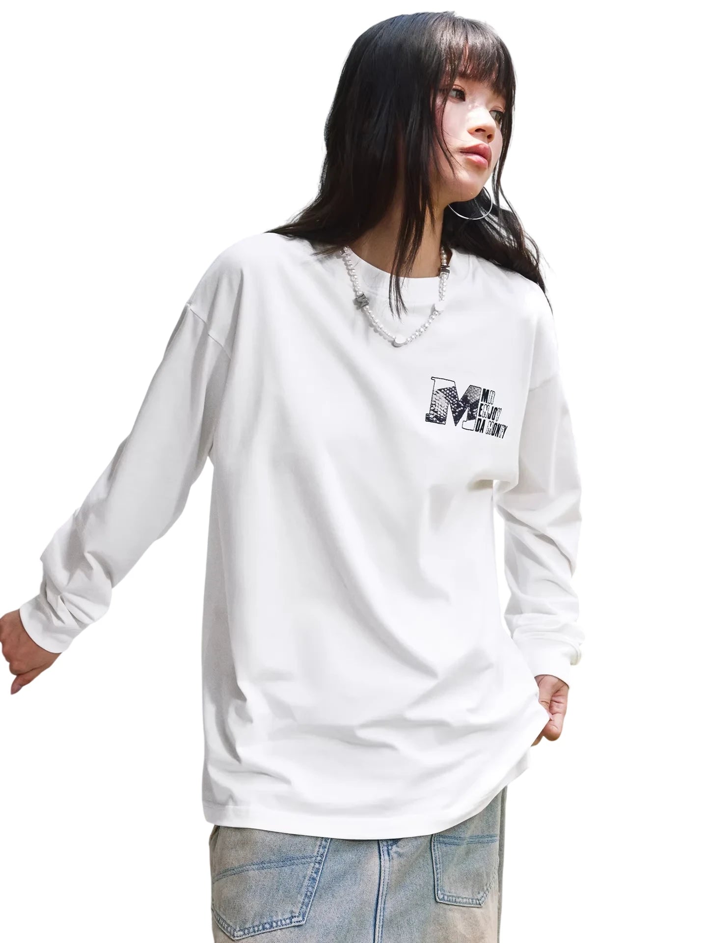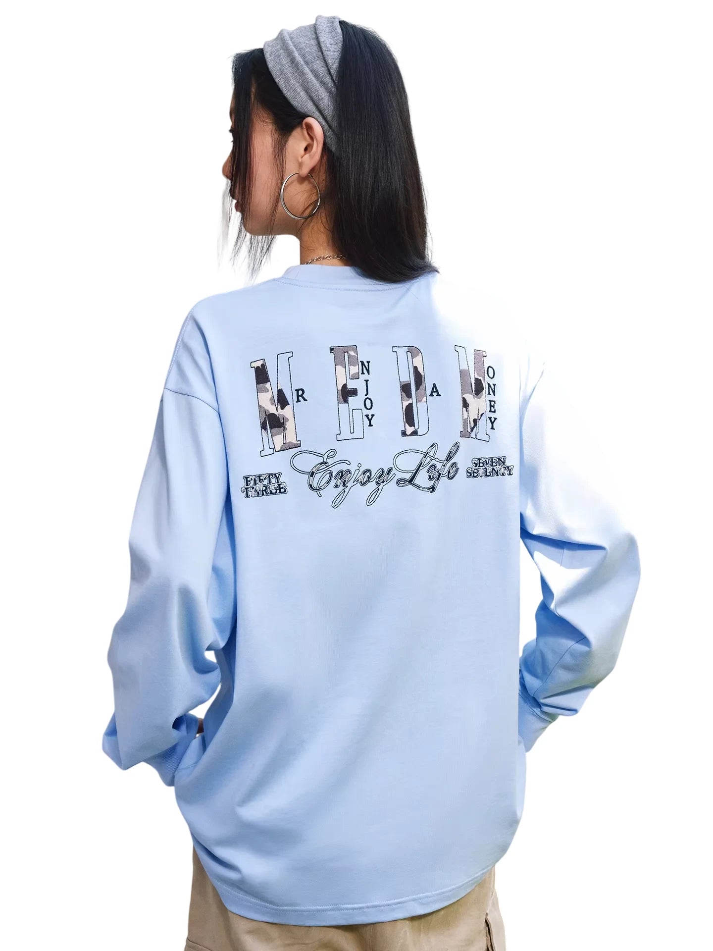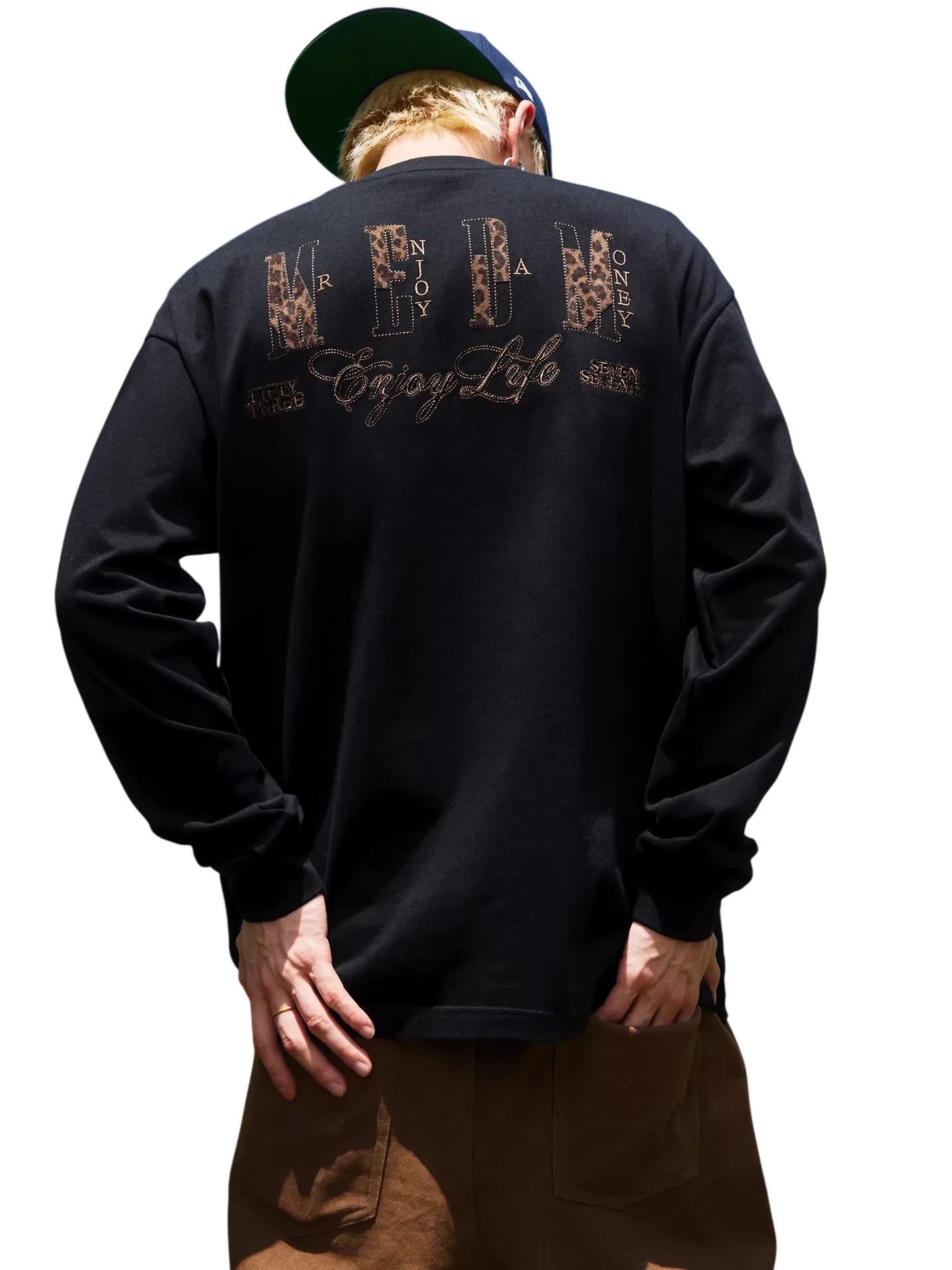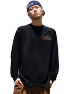 MEDM Faux Suede Animal Print Long Sleeve Crew Neck T-Shirt