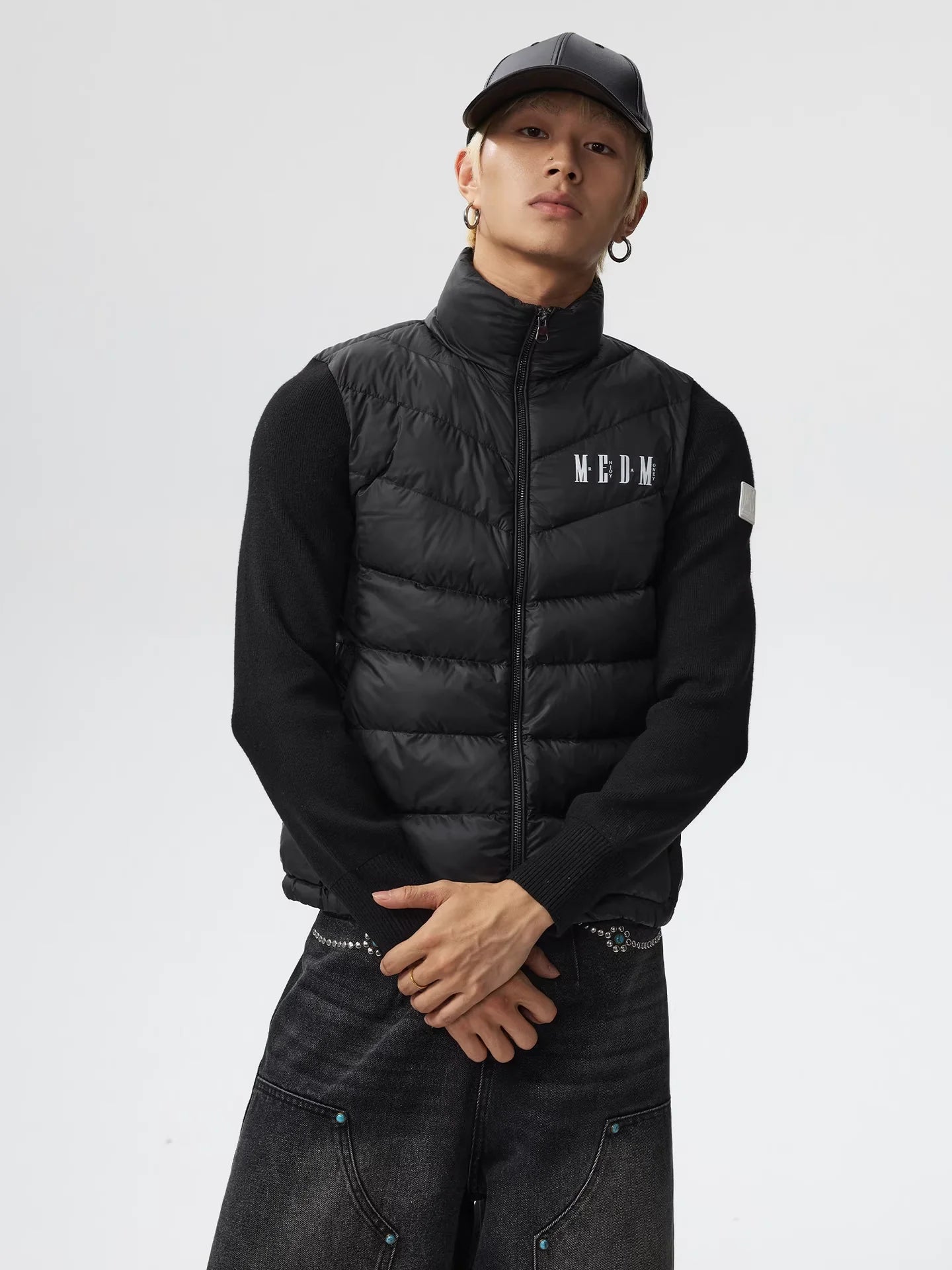 MEDM Men's Lightweight Duck Down Vest with Stand Collar and Raglan Sleeves