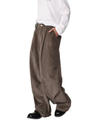 Elevate your autumn wardrobe with these men's loose wide-leg corduroy cargo pants. Designed for comfort and modern streetwear appeal, these trousers feature a relaxed, floor-length fit that pairs perfectly with casual or commuter outfits. The rich textured fabric offers a soft, plush feel, while the high-waisted cut enhances both comfort and style. Functional side pockets add practicality, making these pants a versatile choice for everyday wear.