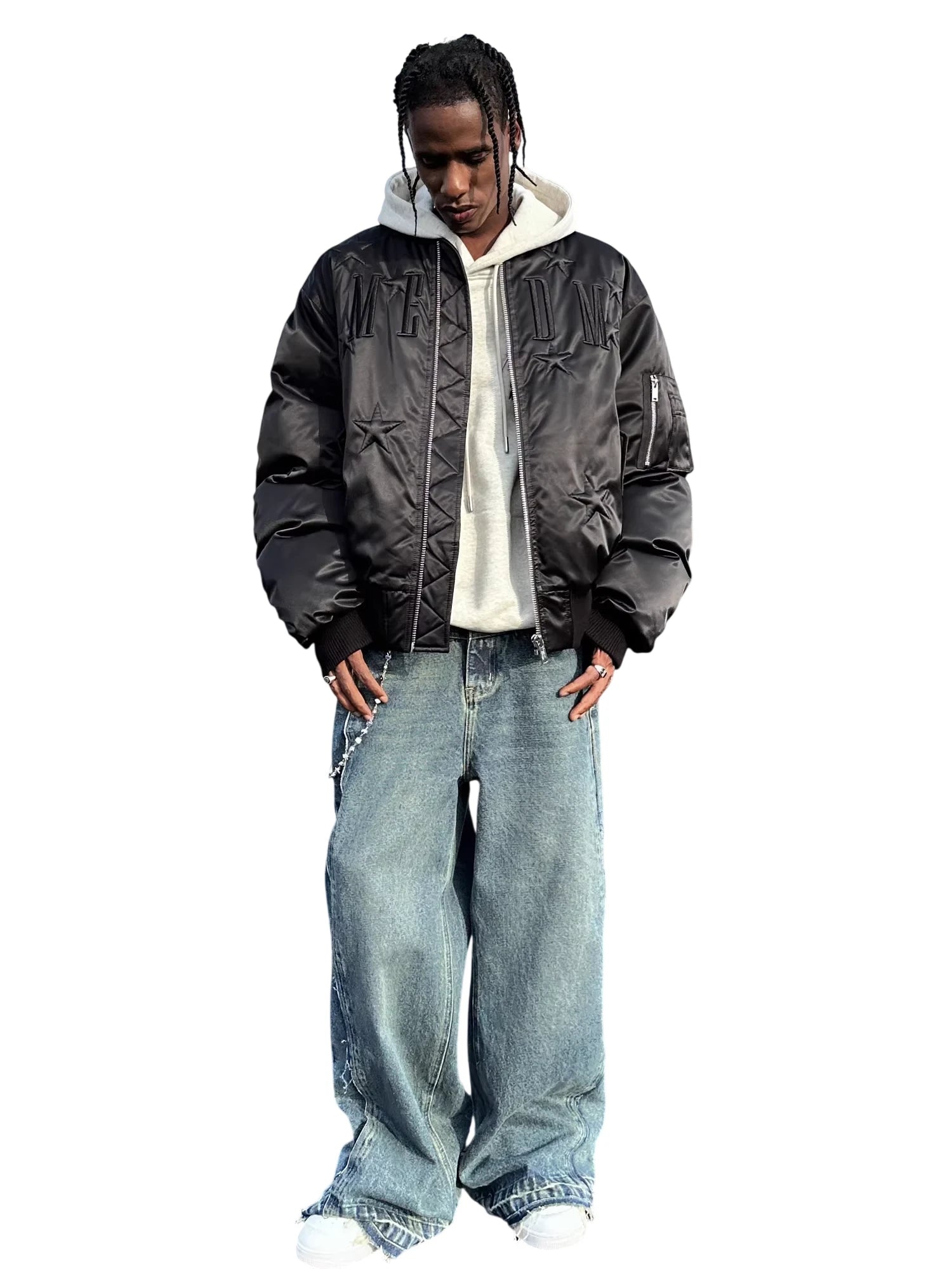MEDM Men's Star Embroidered MA-1 Duck Down Bomber Jacket