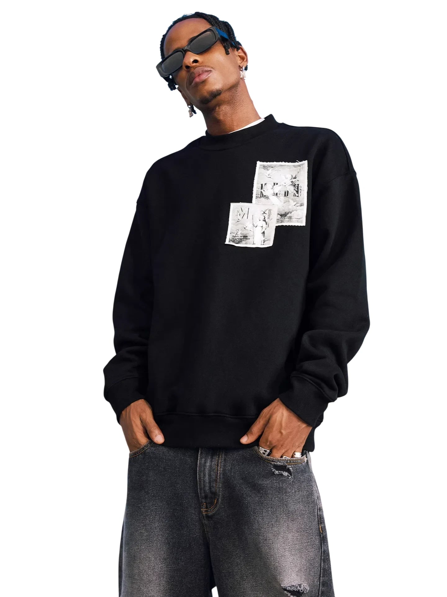 MEDM Personalized Angel Letter Graphic Patchwork Sweatshirt