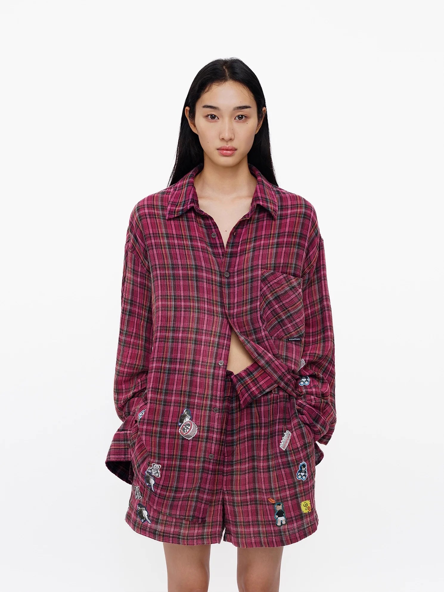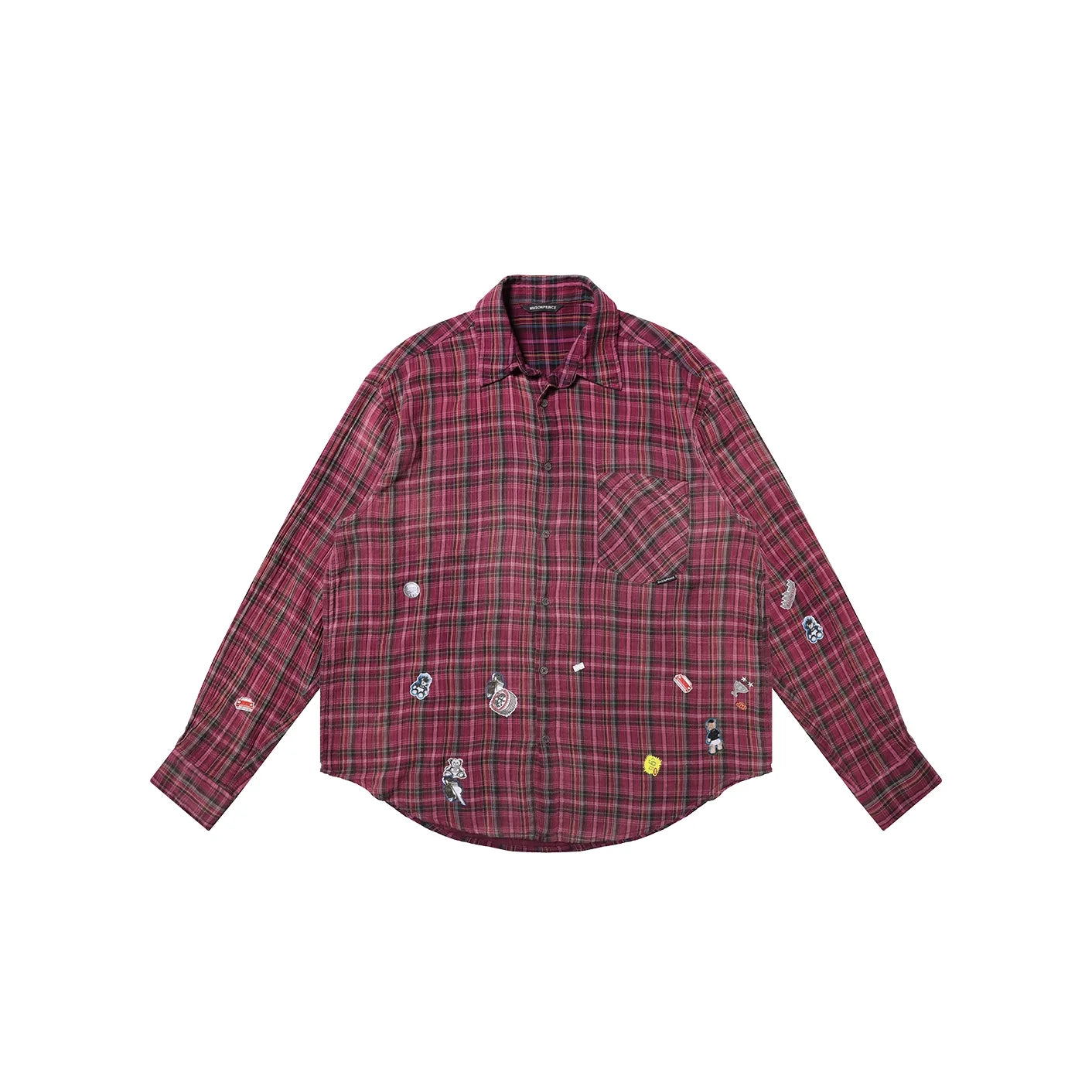 MASONPRINCE Gradient Plaid Flannel Shirt in Dragon Fruit Hue