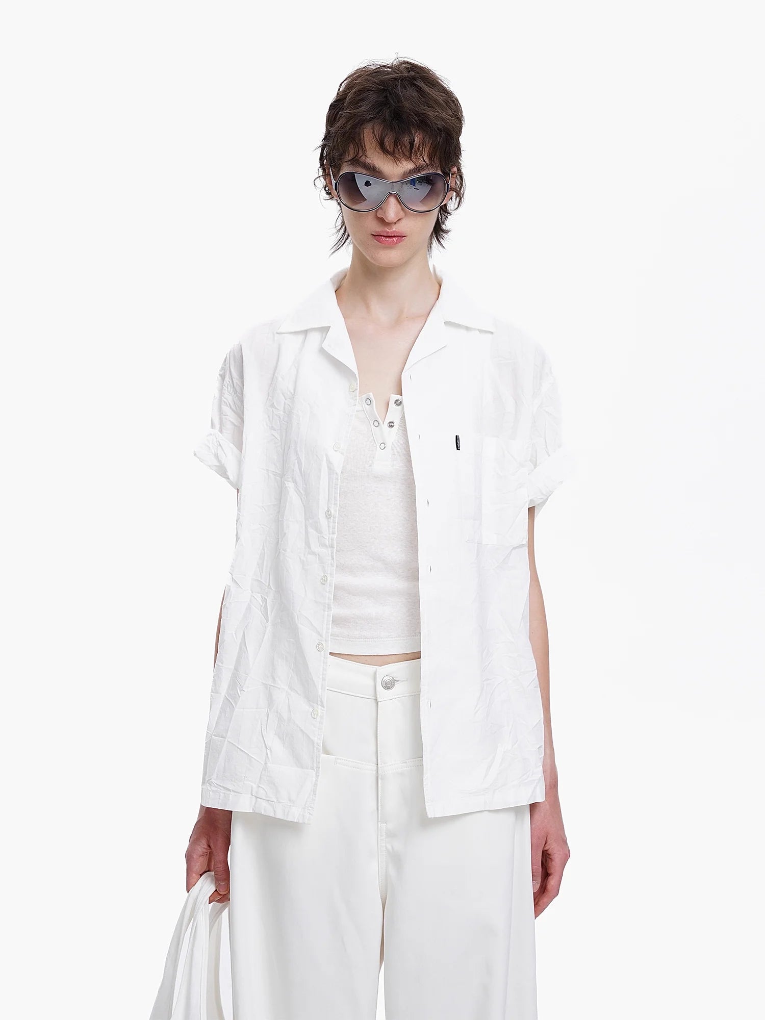 Elevate your casual summer wardrobe with this lightweight and breathable short-sleeve vacation shirt, crafted from a comfortable blend of linen and Tencel. Designed with a naturally crinkled texture, this easygoing shirt features a relaxed, oversized fit ideal for warm-weather styling. Worn open or buttoned up, it's a versatile choice for men's resort or streetwear-inspired looks. Perfectly pairs with wide-leg trousers or denim for effortless everyday appeal.