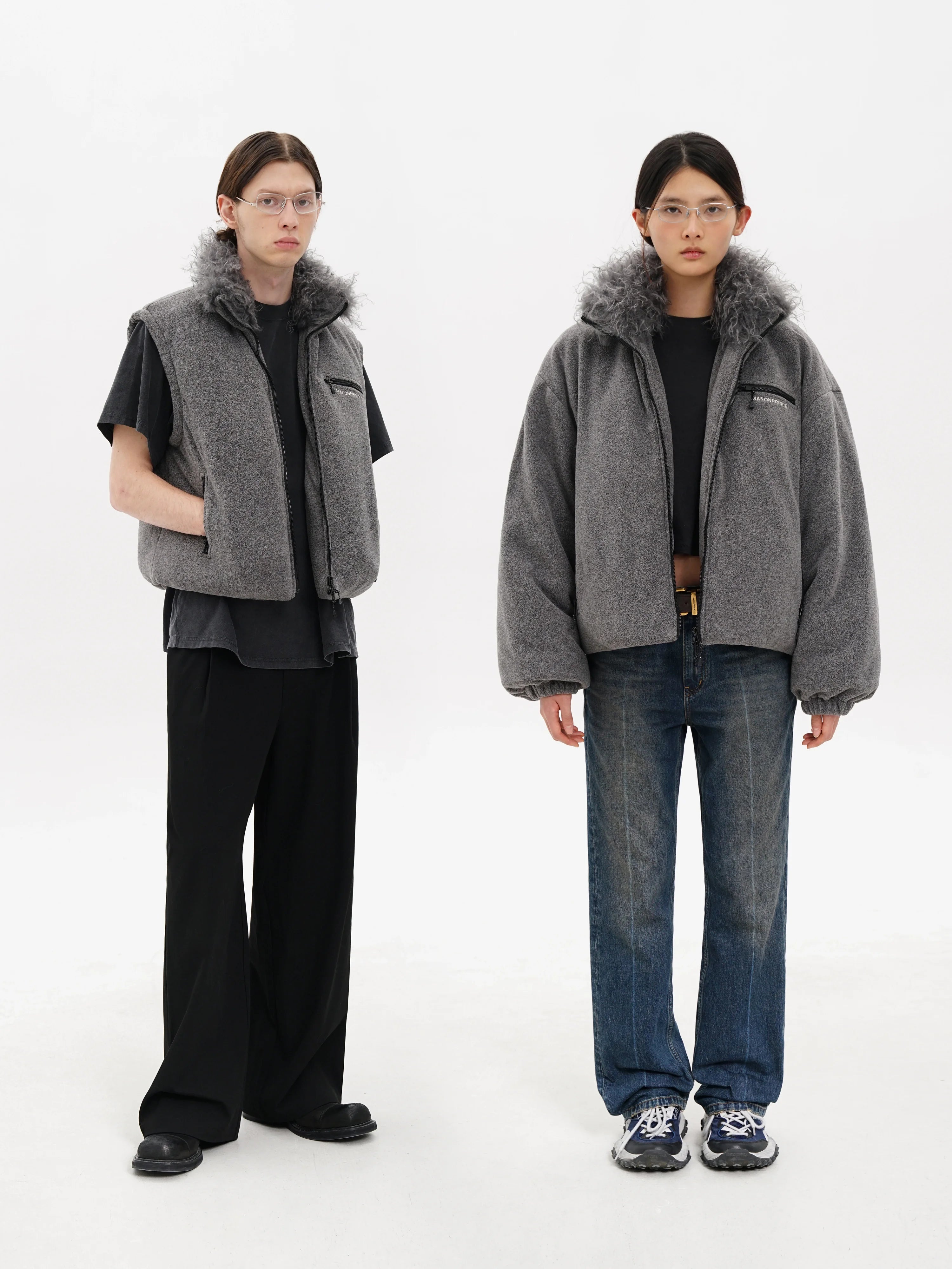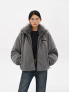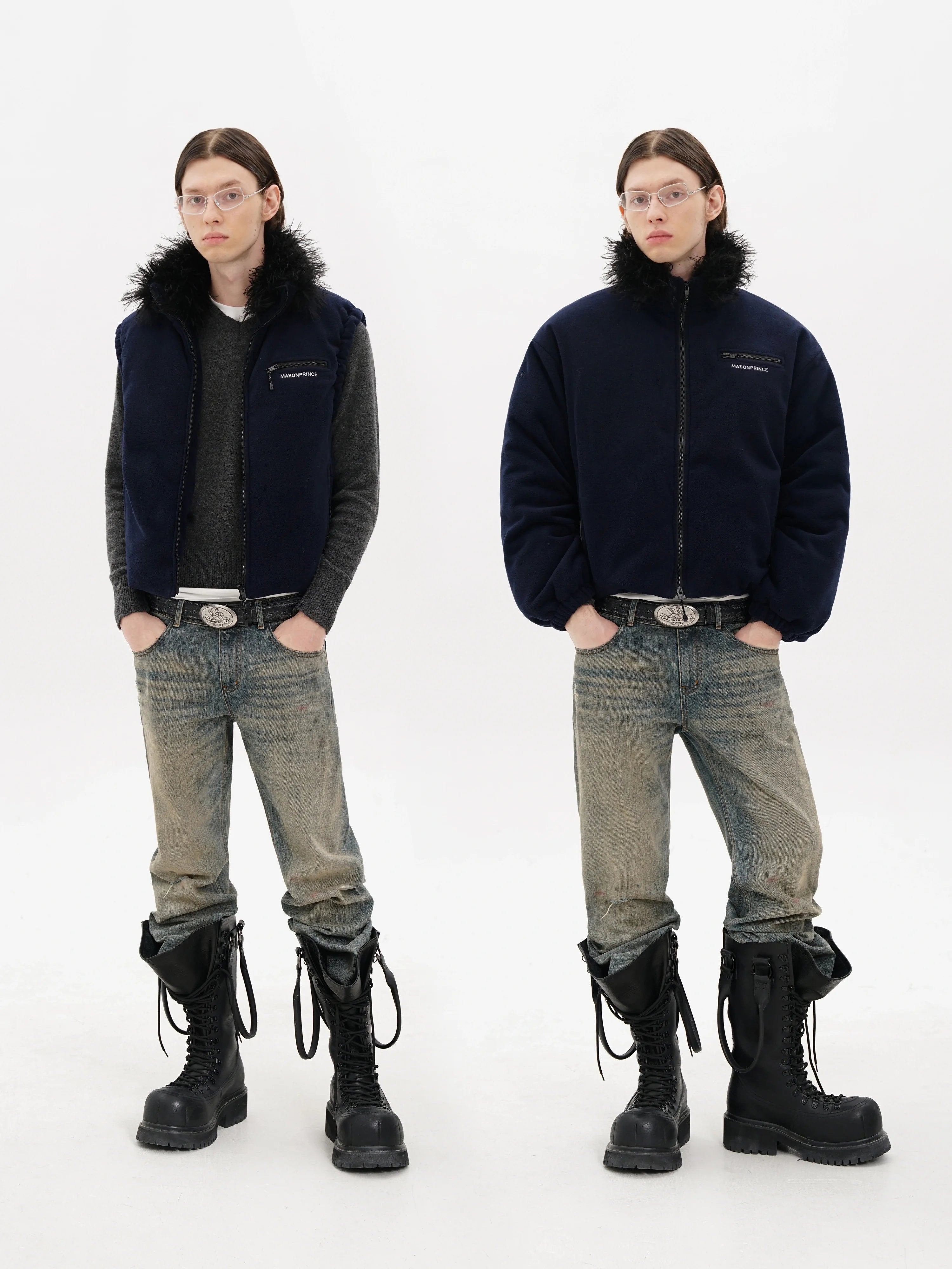 MASONPRINCE Men's Anti-Static Fleece Down Jacket with Faux Fur Collar