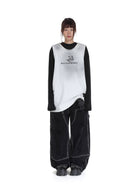 The front showcases a distressed print with the statement 'NO COMPROMISE' and a prominent 'B' logo across the chest, giving it a bold streetwear vibe. A small woven patch near the bottom hem adds subtle detail, perfect for those who appreciate artisan-inspired, handmade style. Ideal for warm-weather layering or solo wear.