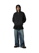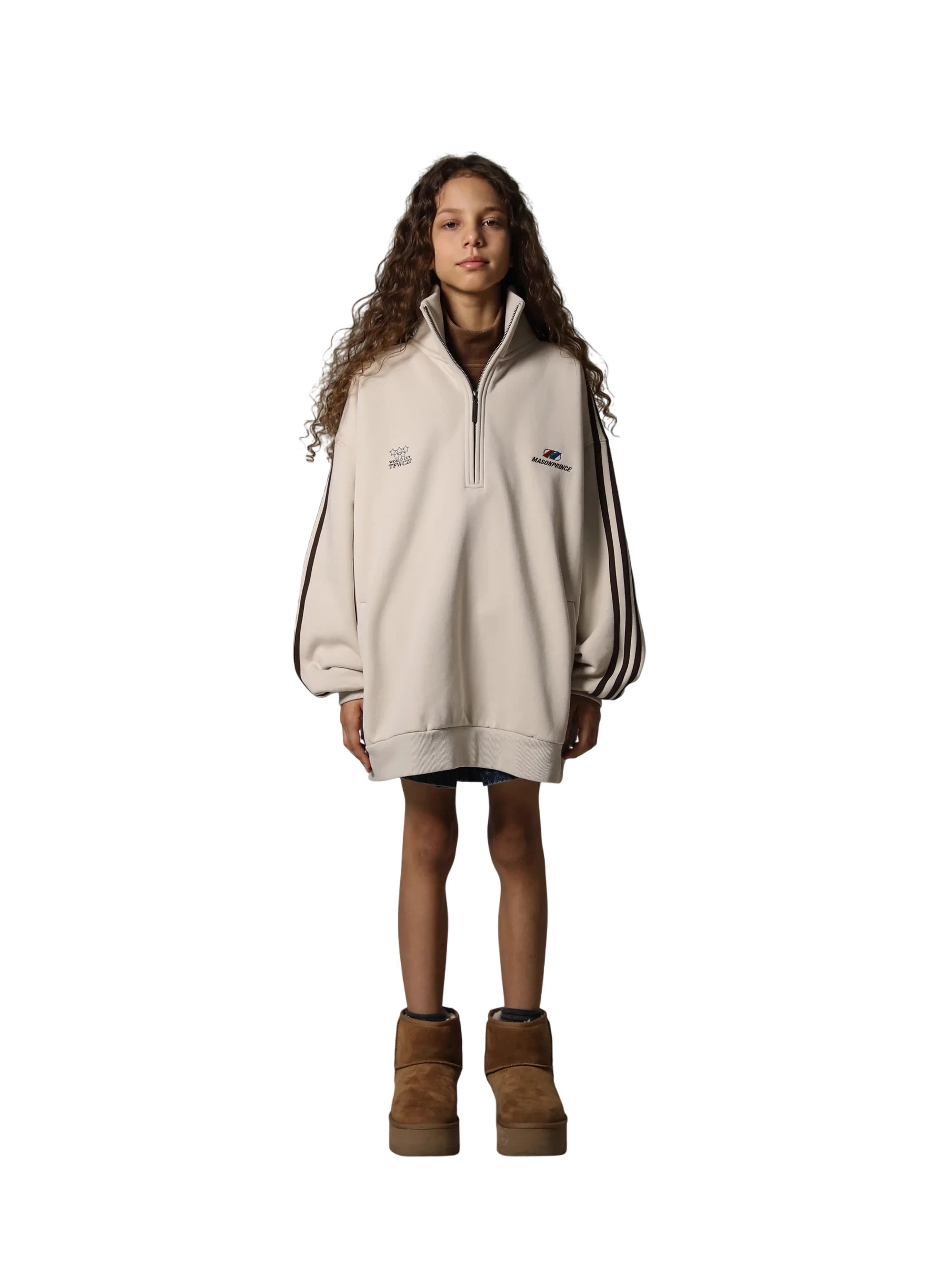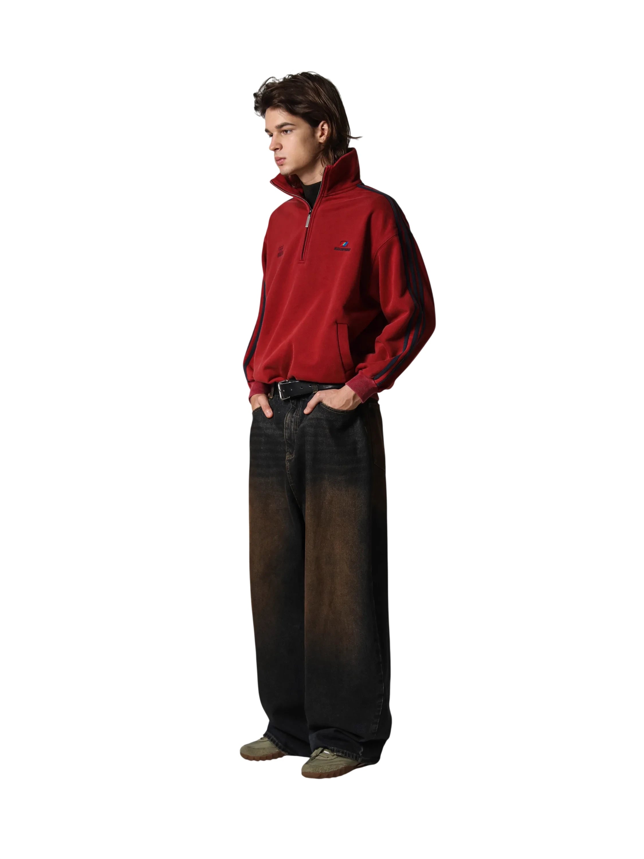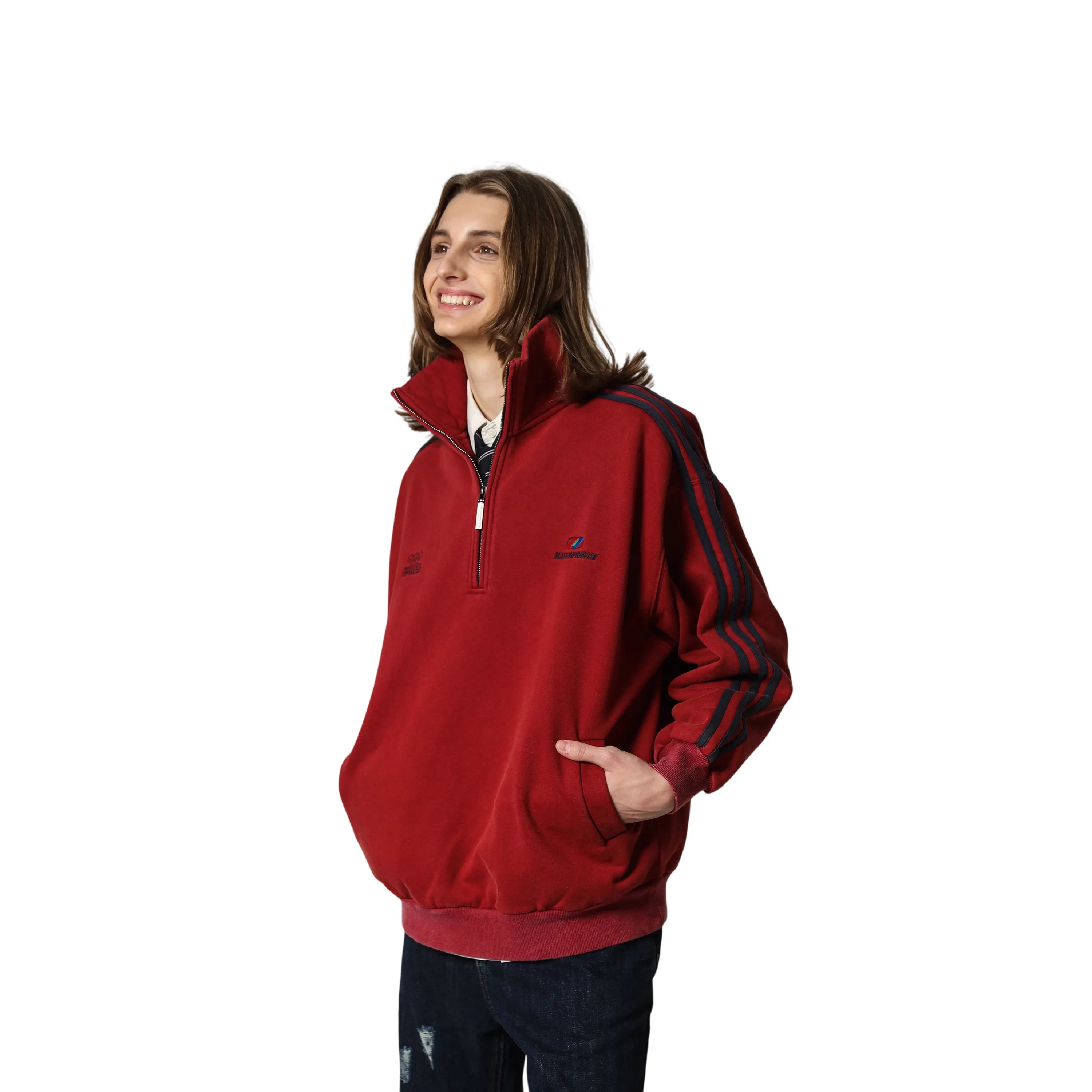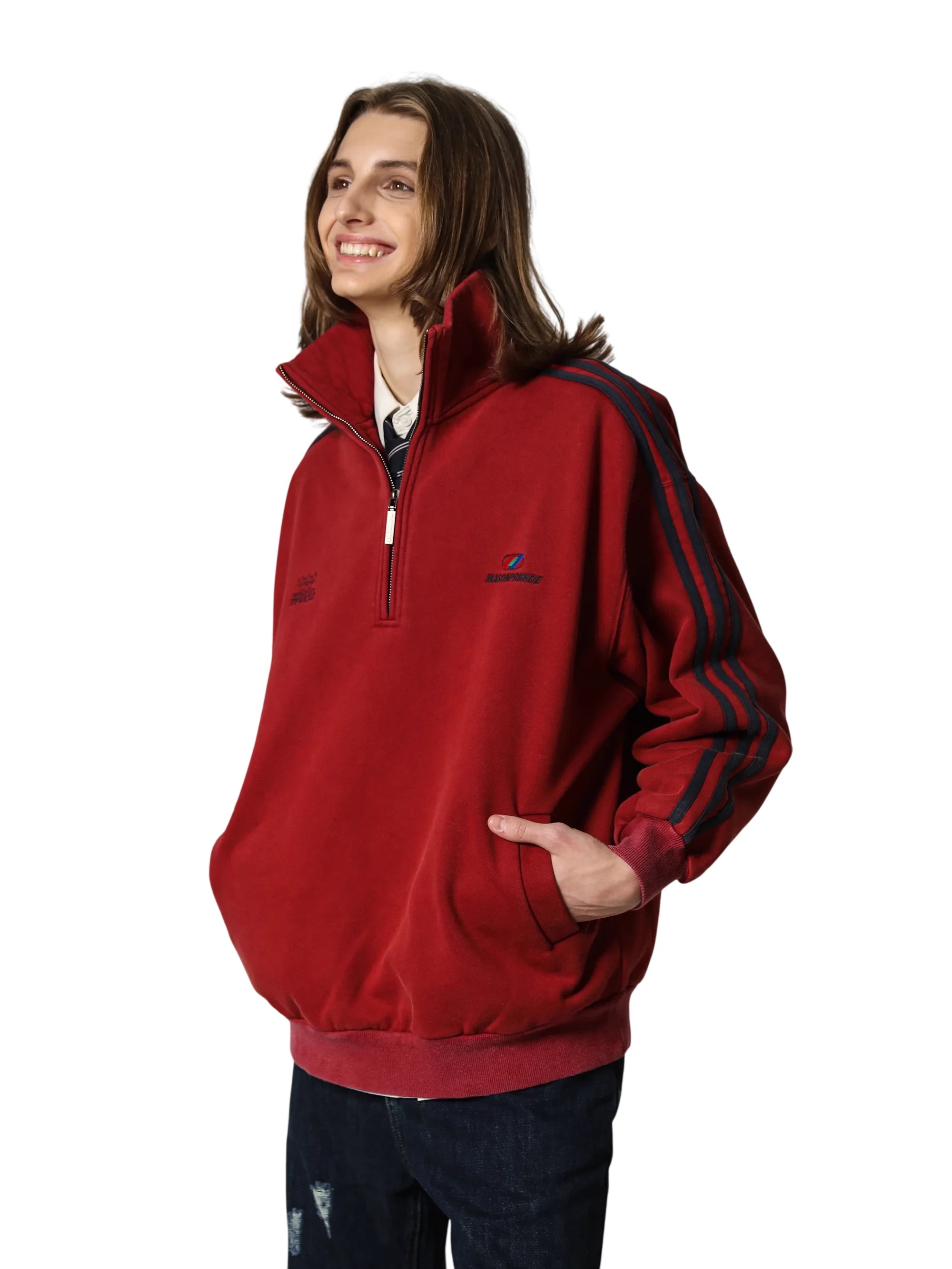Stay warm and stylish during the colder months with this men's fleece-lined sweatshirt. Designed with a sporty feel, it features a stand collar and a convenient quarter-zip front. Dual black stripes run down the sleeves for a dynamic look, while the elastic cuffs and hem ensure a comfortable fit. The subtle embroidered logo on the chest adds a touch of detail. Perfect for casual wear, this thickened pullover pairs effortlessly with denim or joggers for a laid-back yet polished outfit.