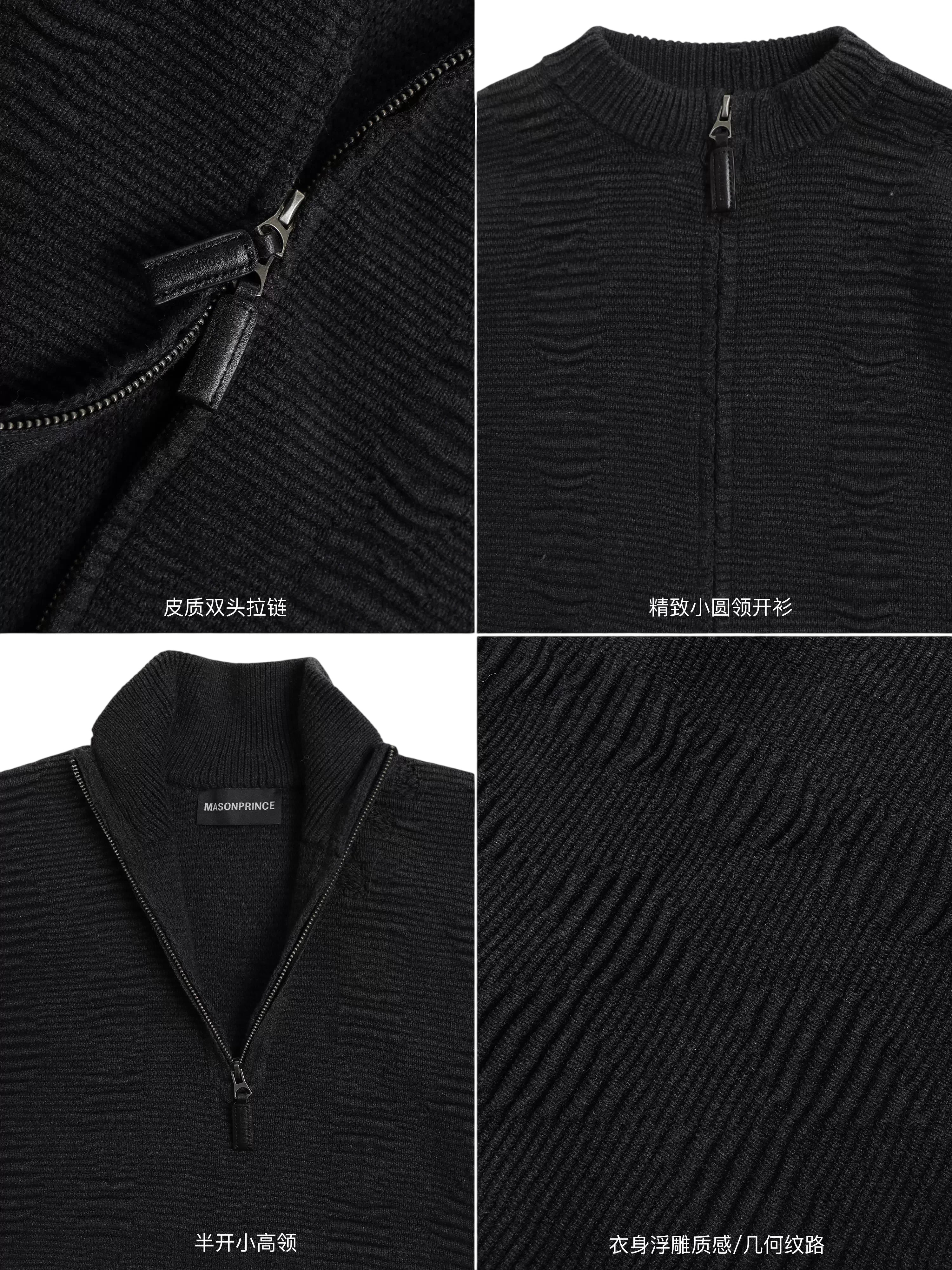 MASONPRINCE Men's Geometric Embossed Half-Zip Sweater