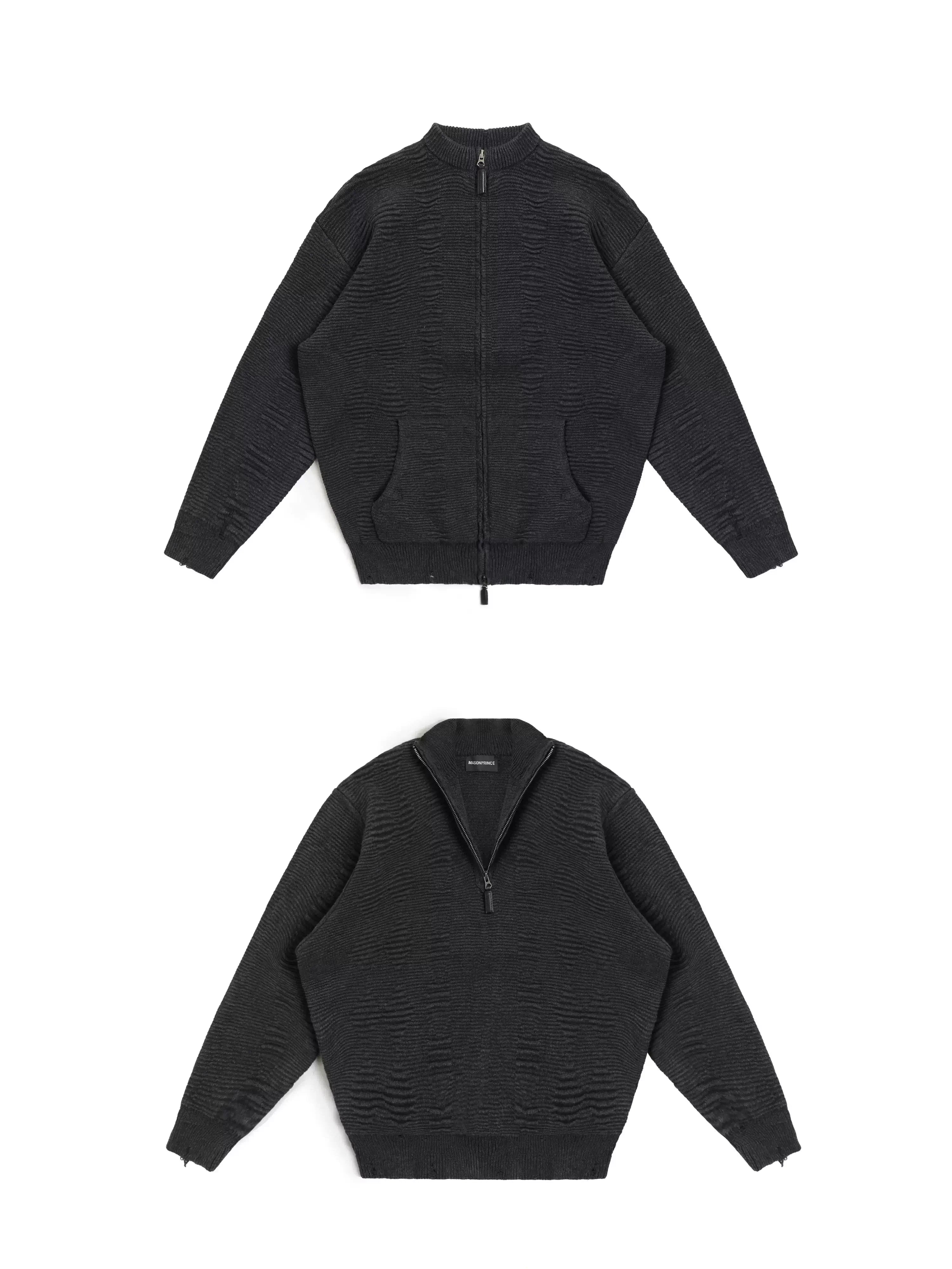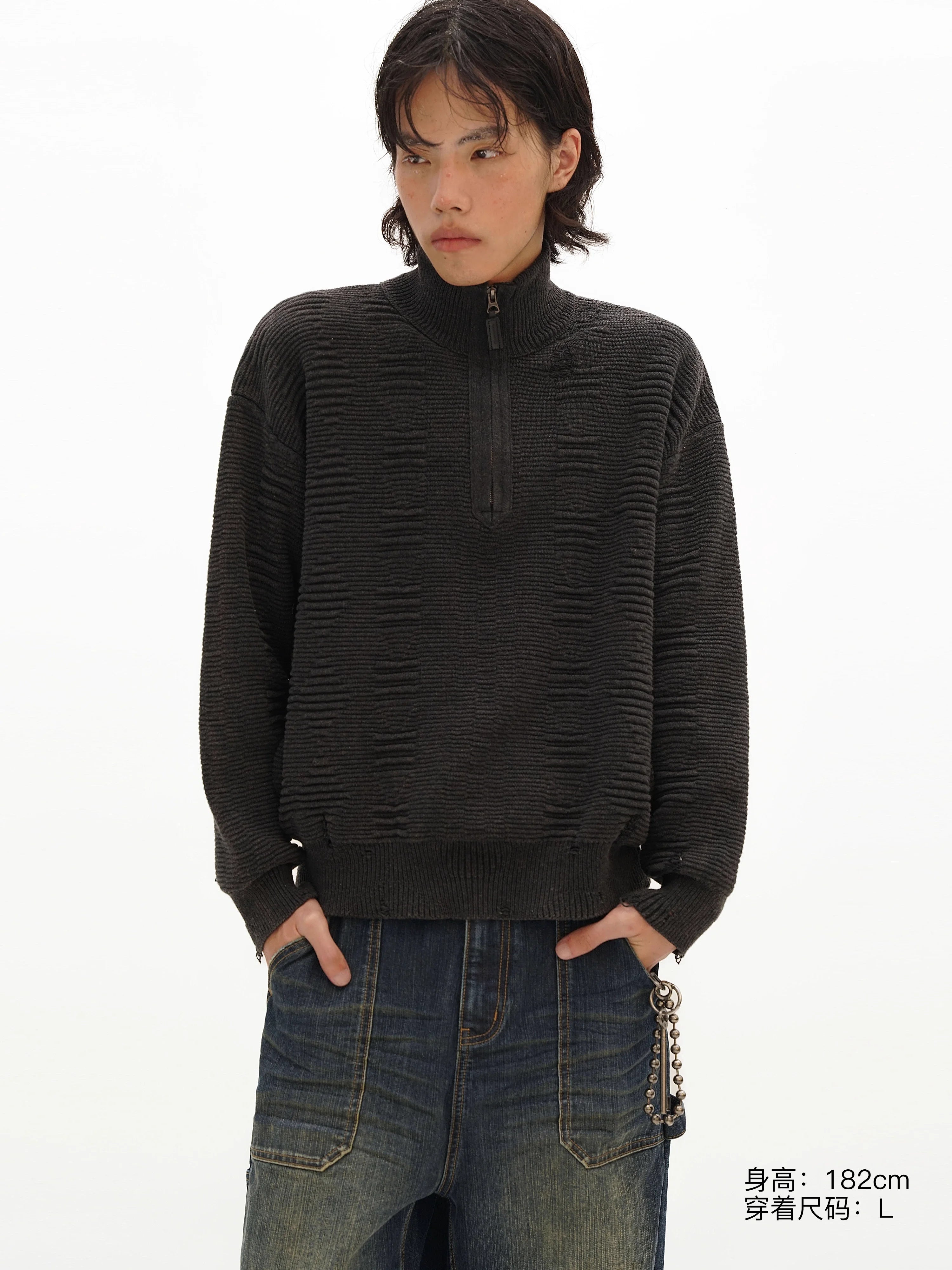 Stay warm and stylish with this men's geometric embossed half-zip sweater. Featuring a chunky knit texture with a distressed, modern pattern, this sweater is ideal for cold weather layering. The half-zip neckline adds versatility, allowing for easy wear over shirts or tees. Perfect for adding a cozy yet refined touch to your winter wardrobe.